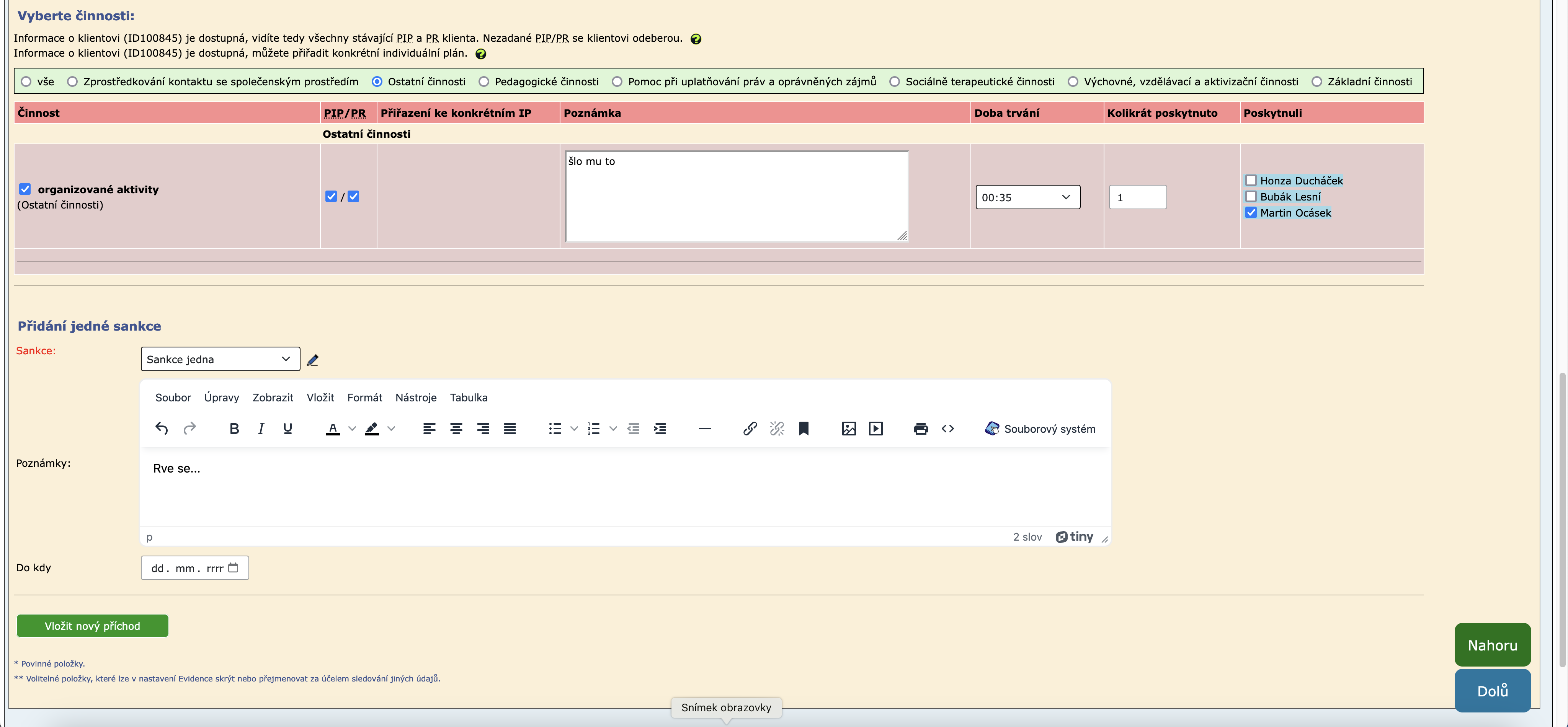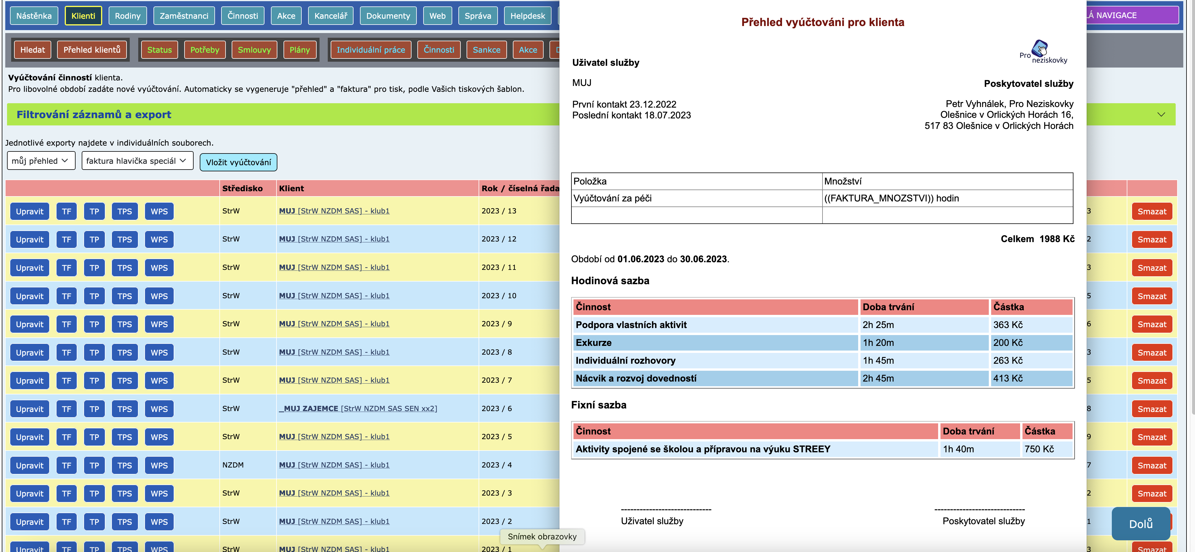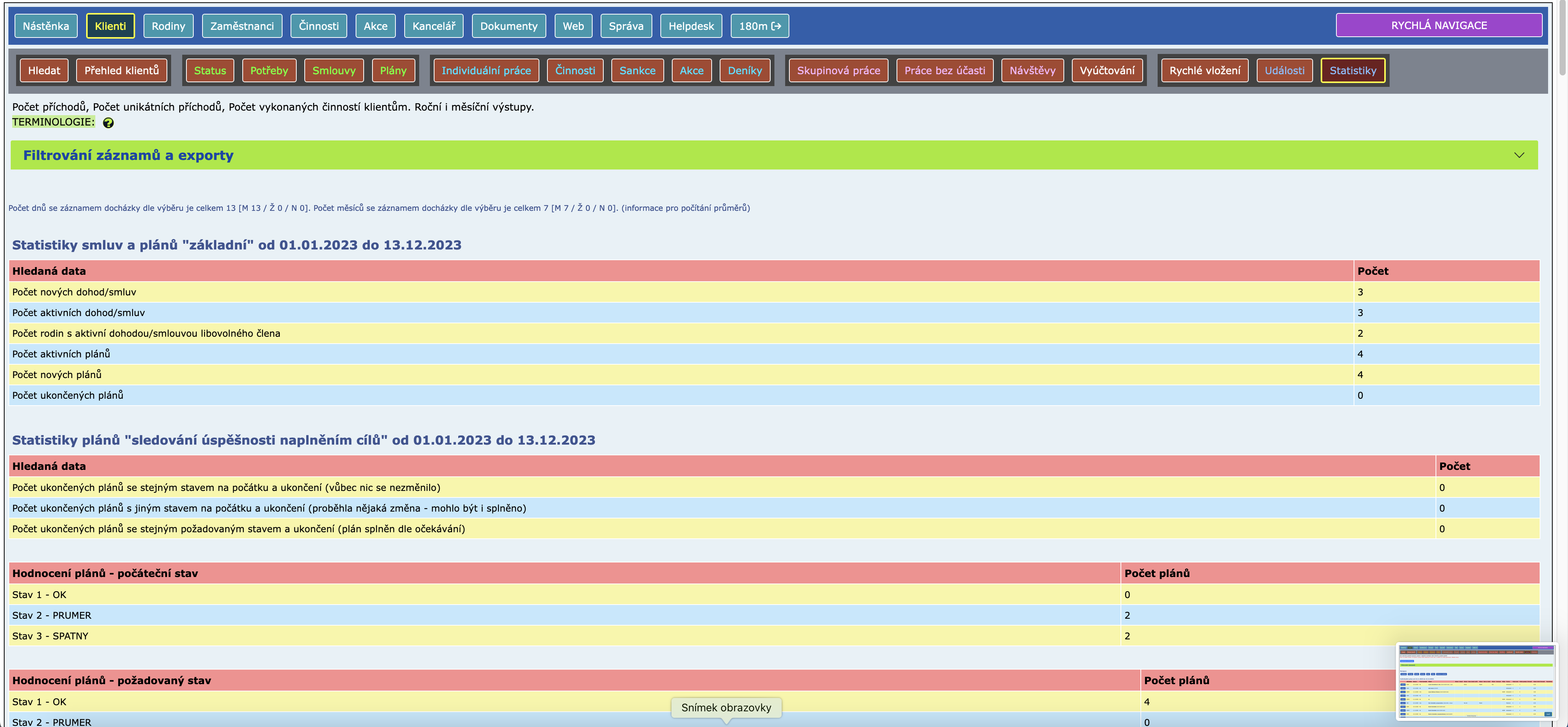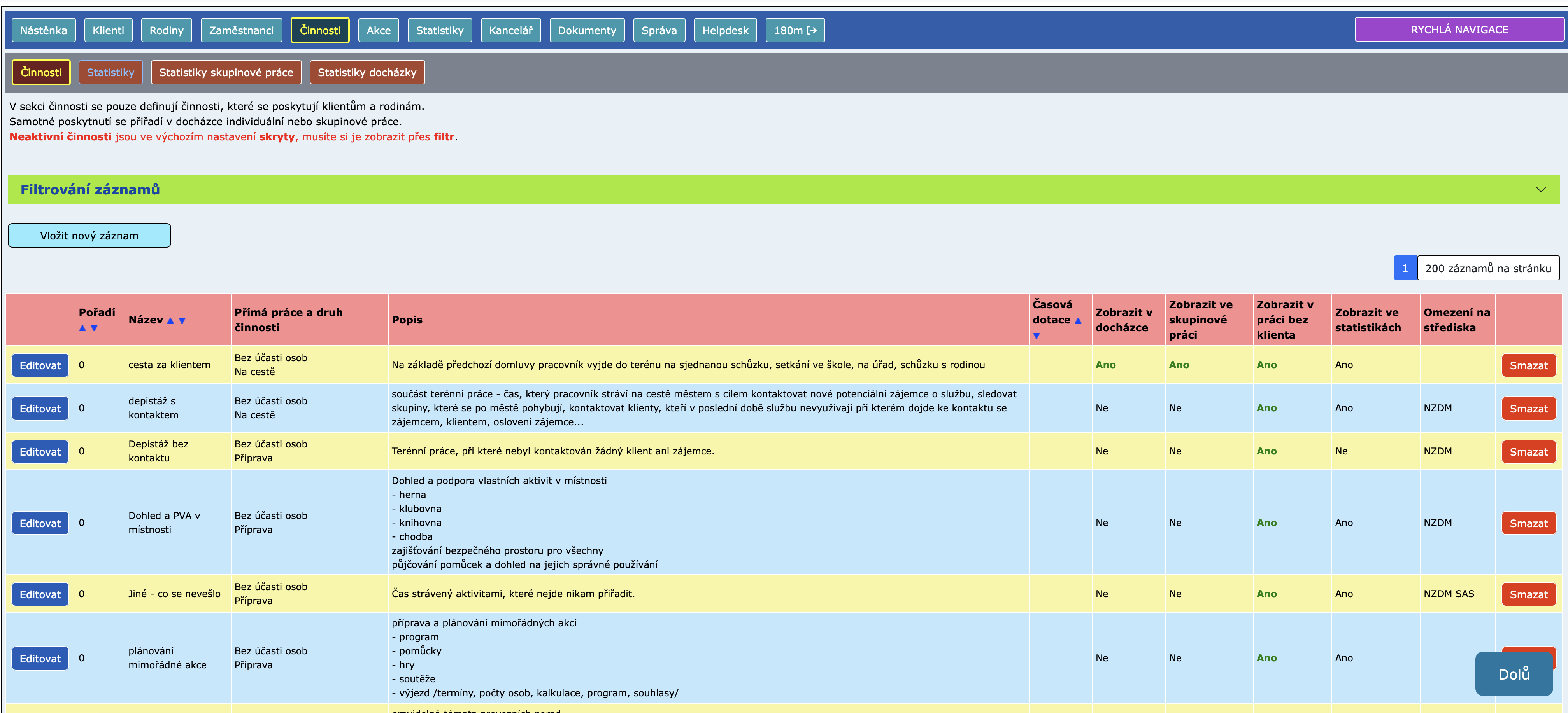 - Evidence smluv, individuálních plánů a přímé práce s klienty.