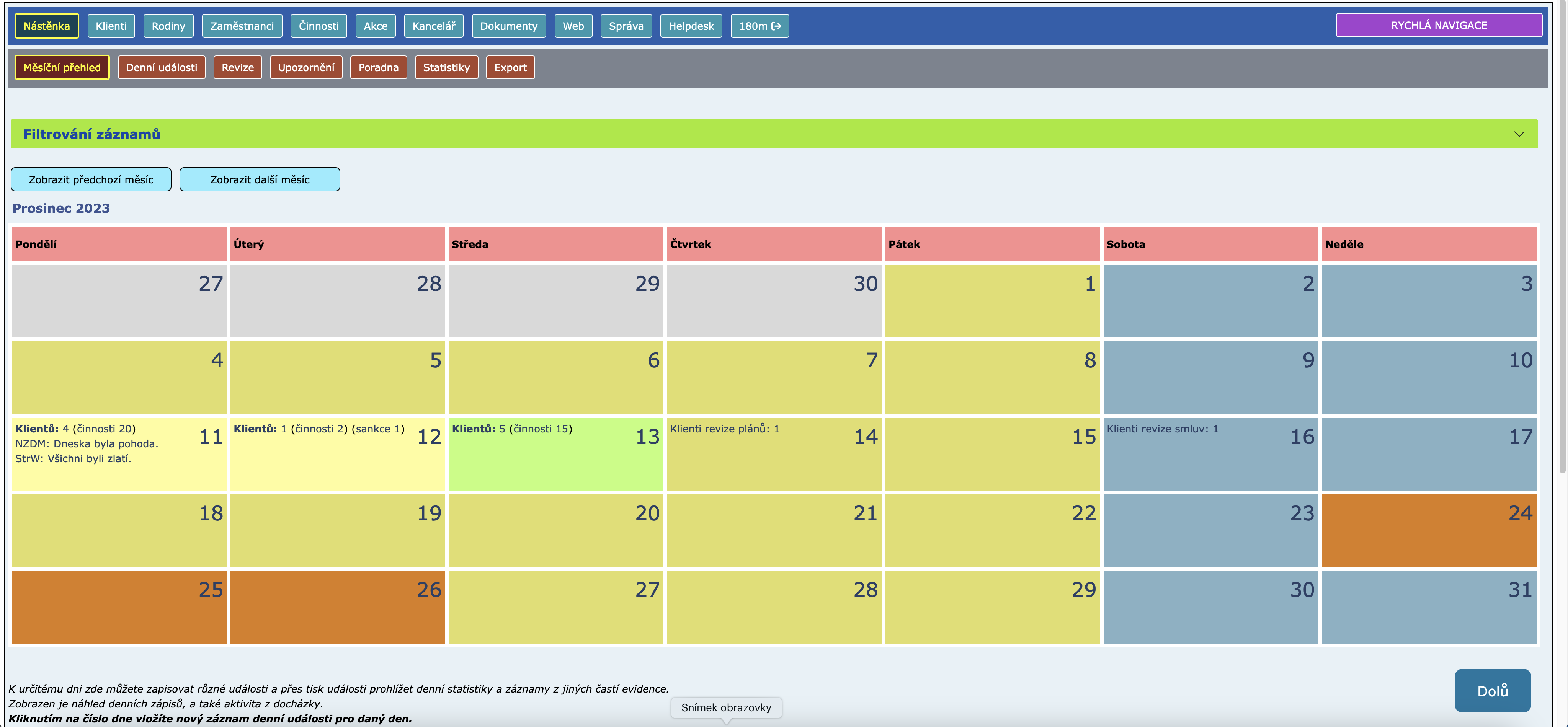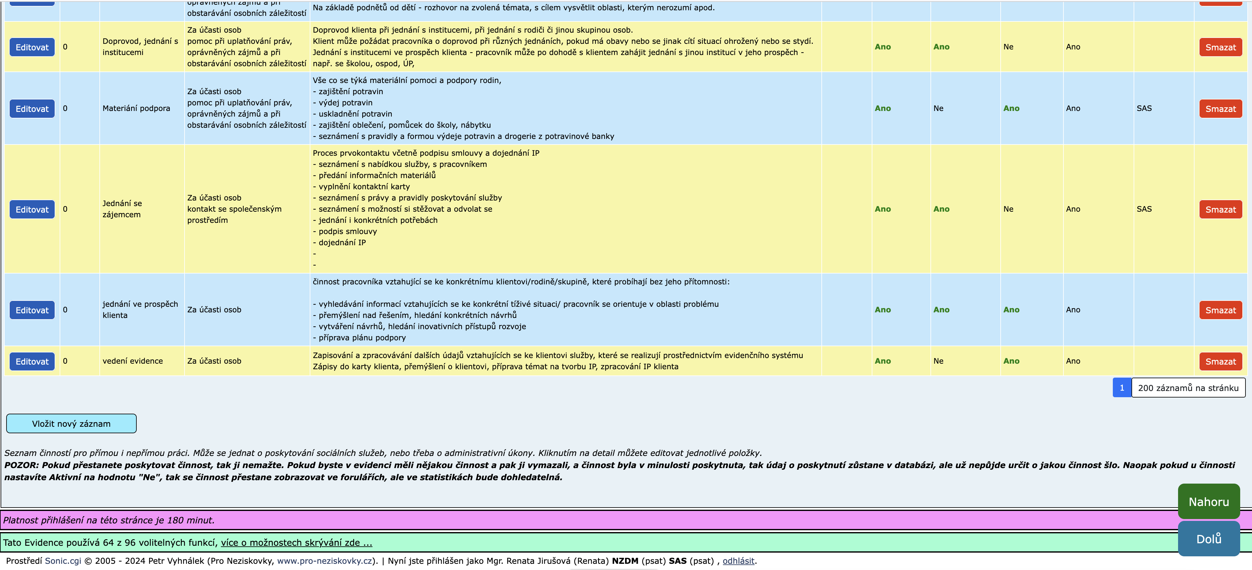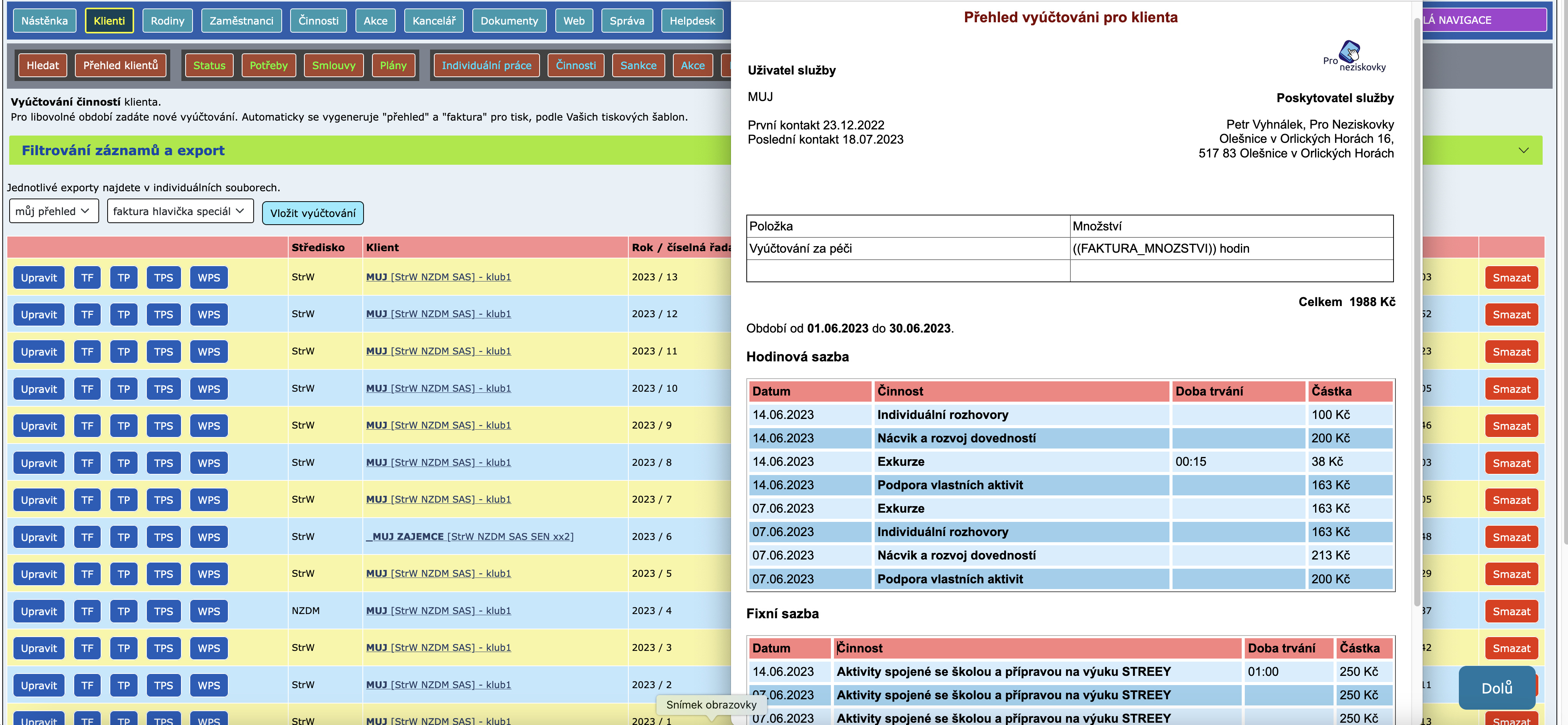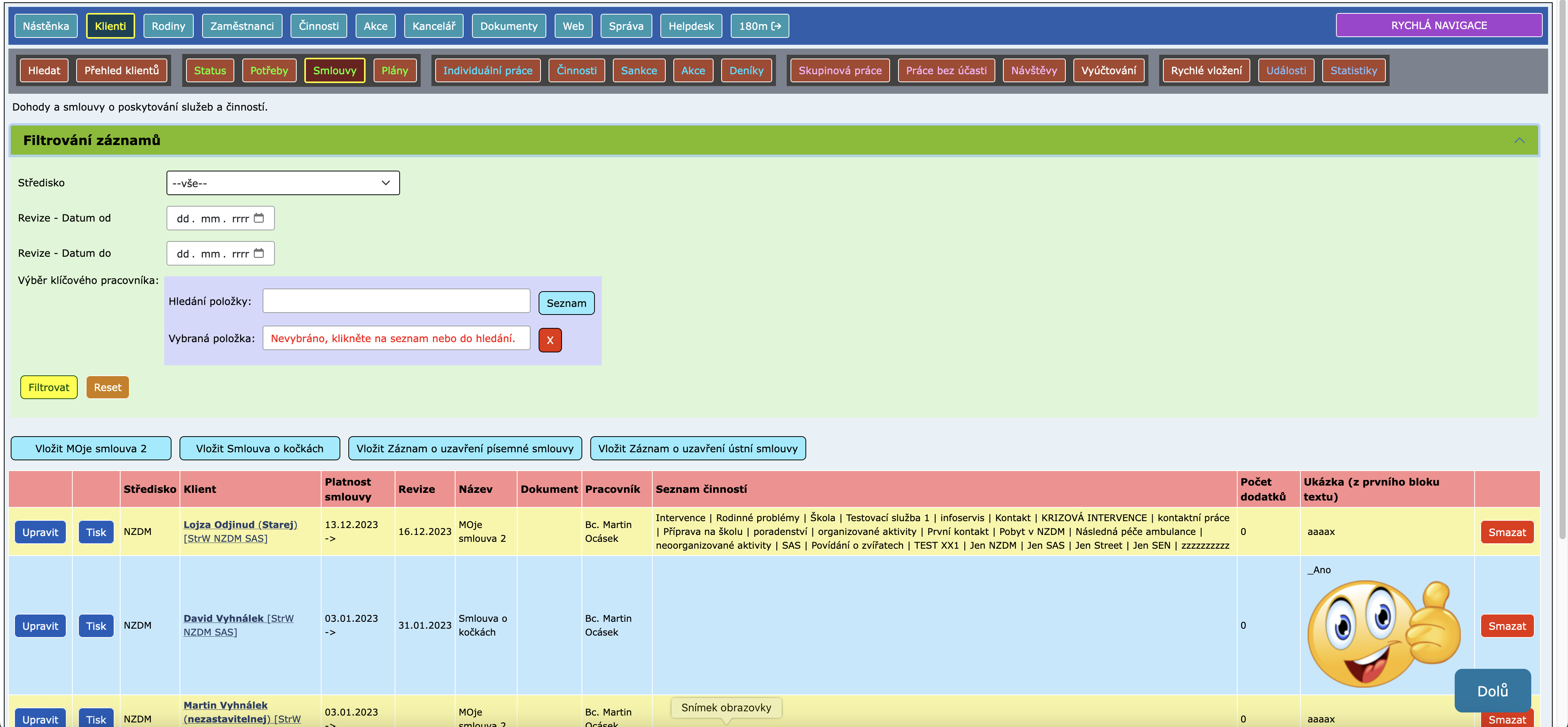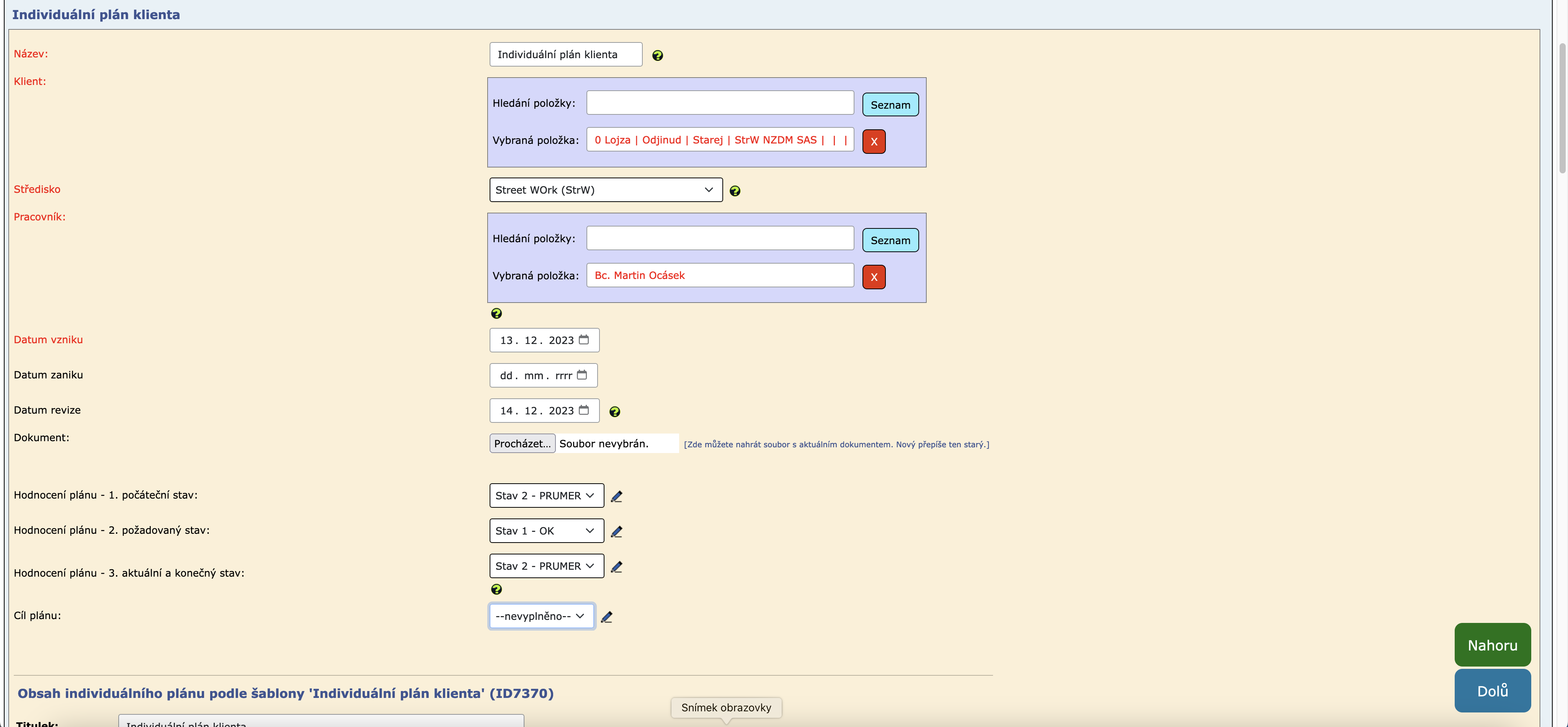- Evidence smluv, individuálních plánů a přímé práce s klienty.