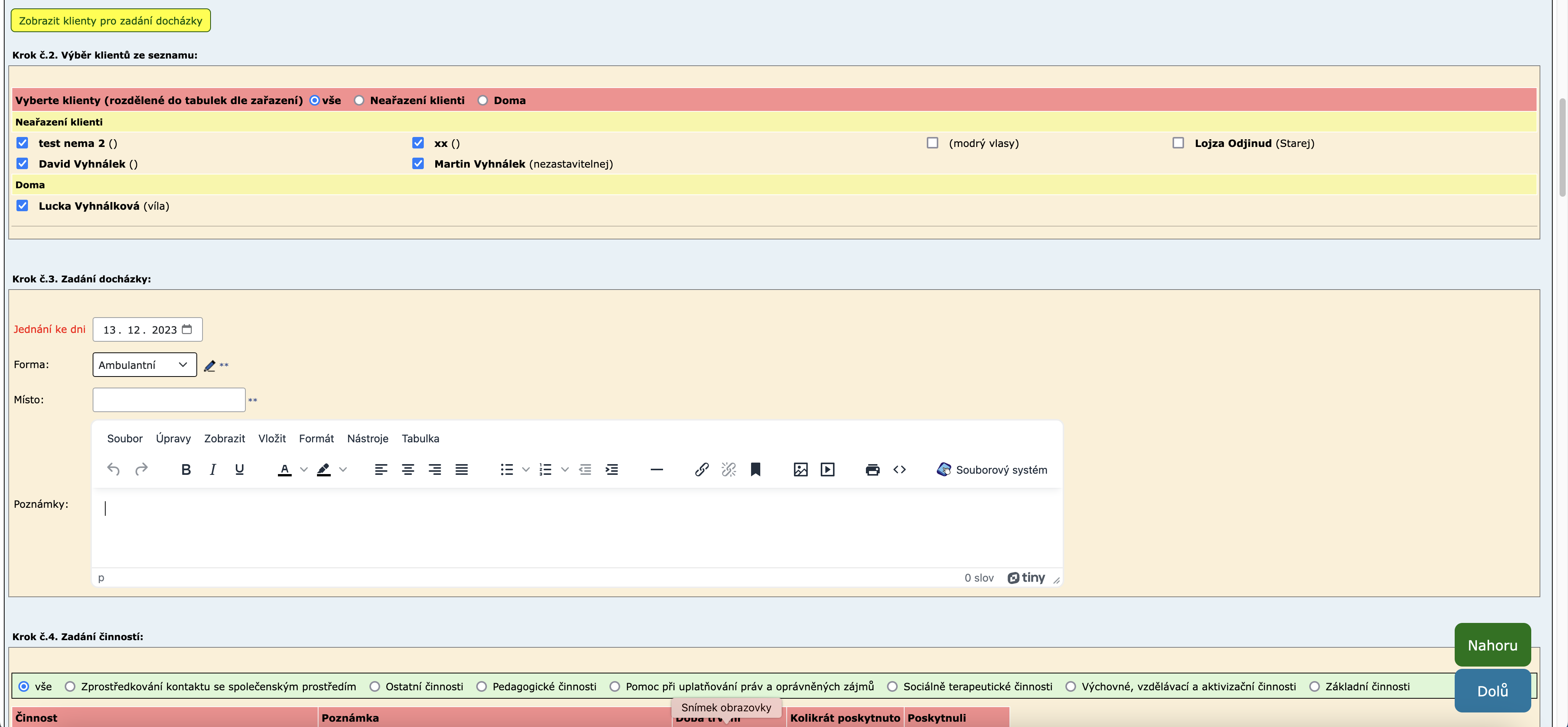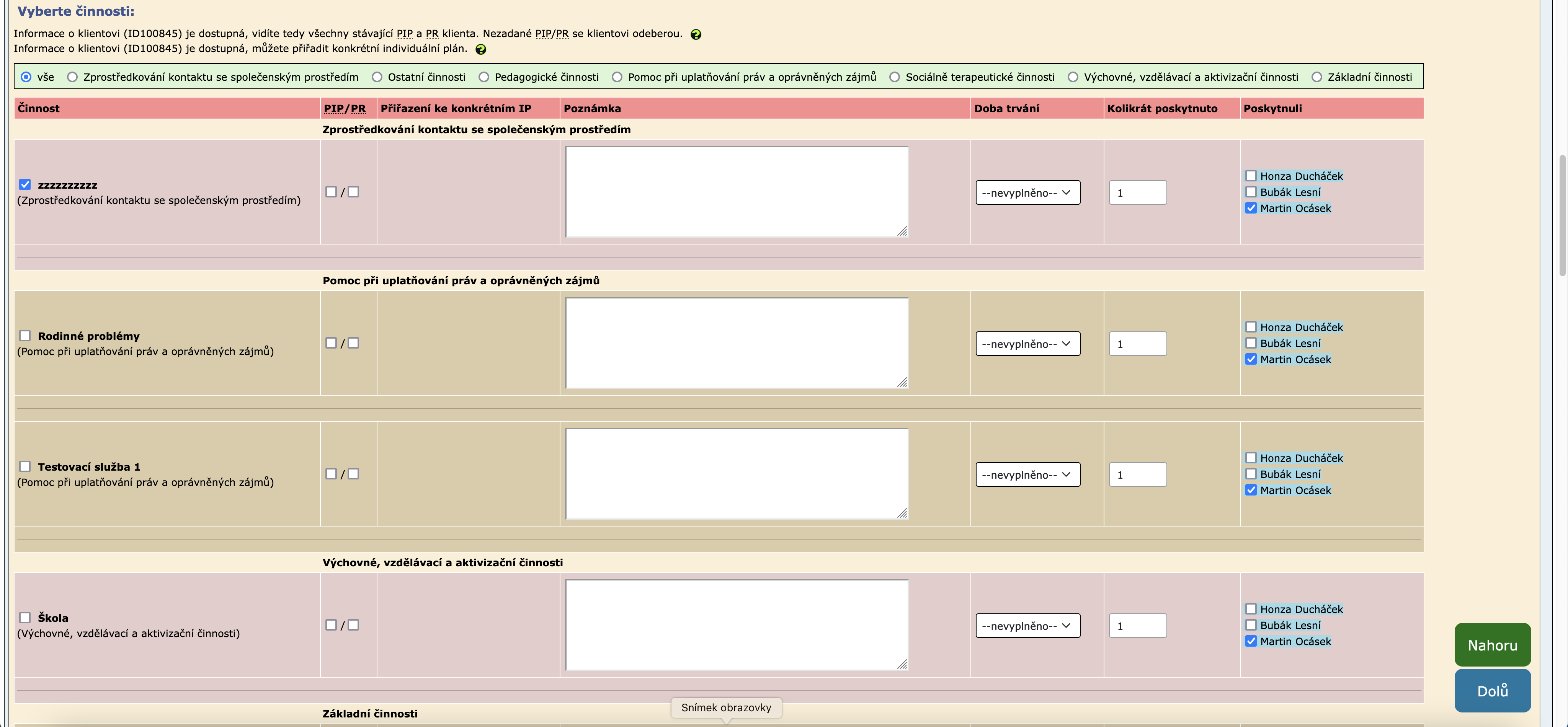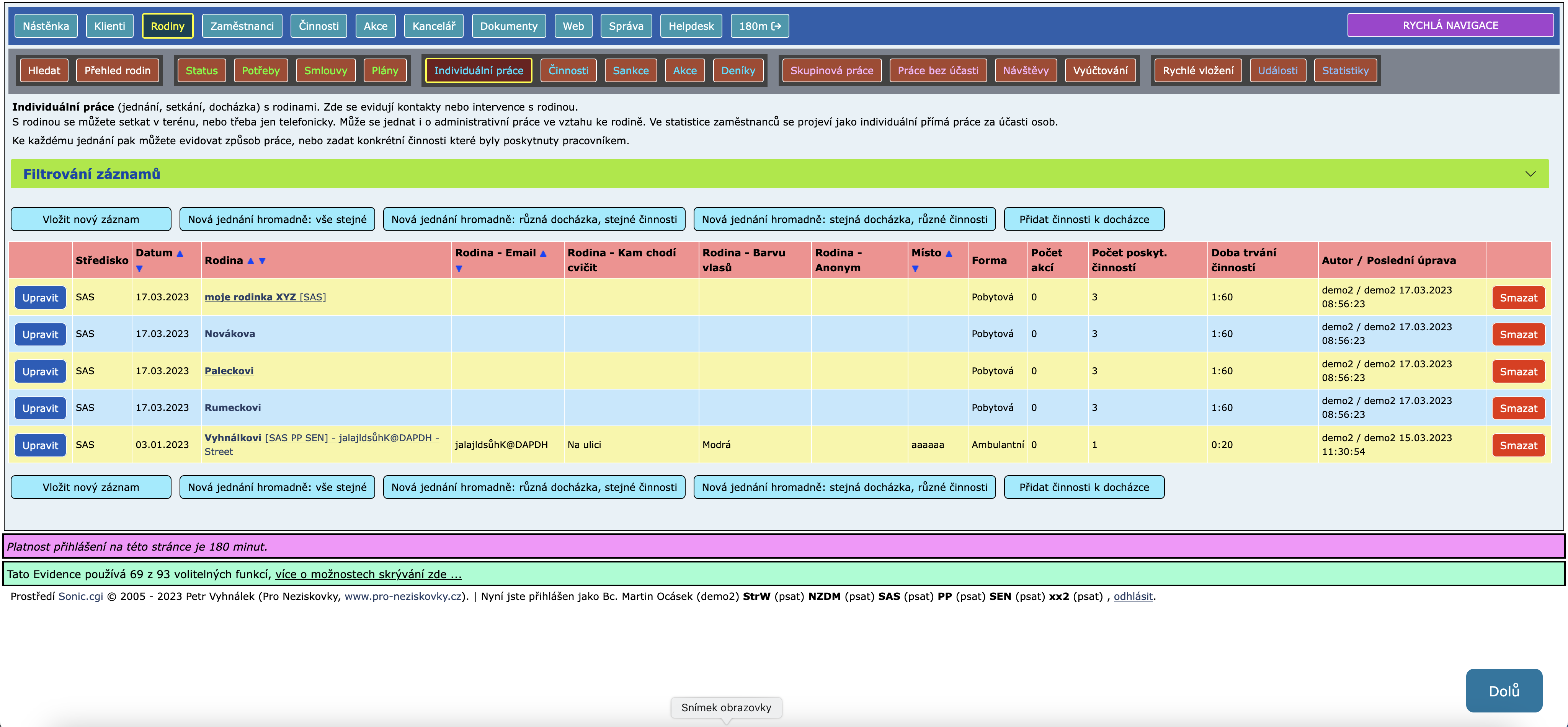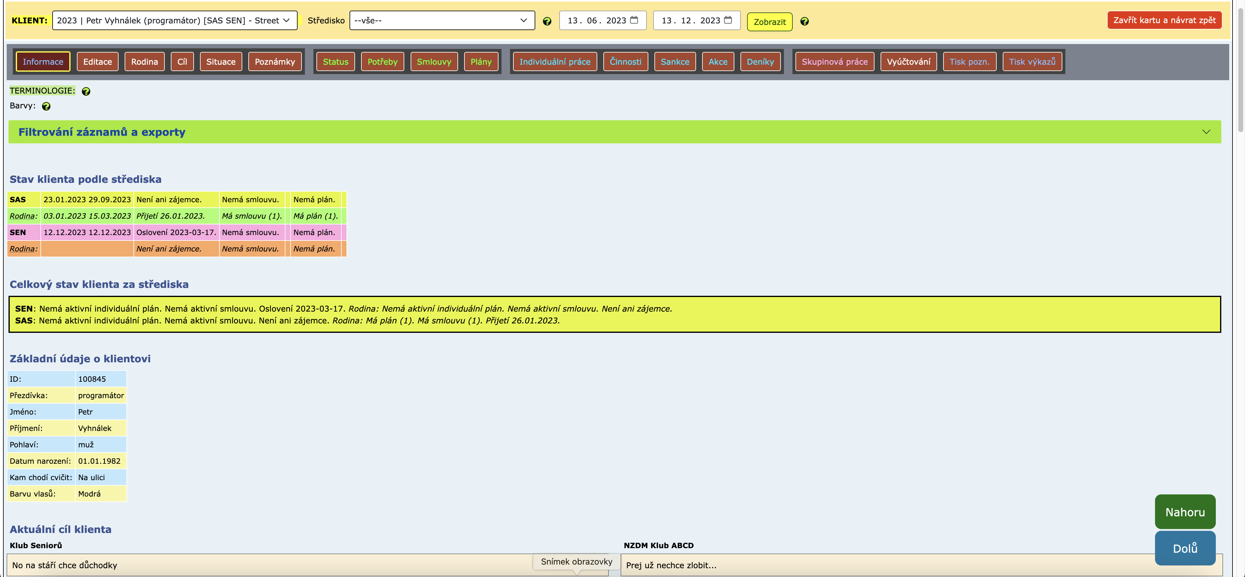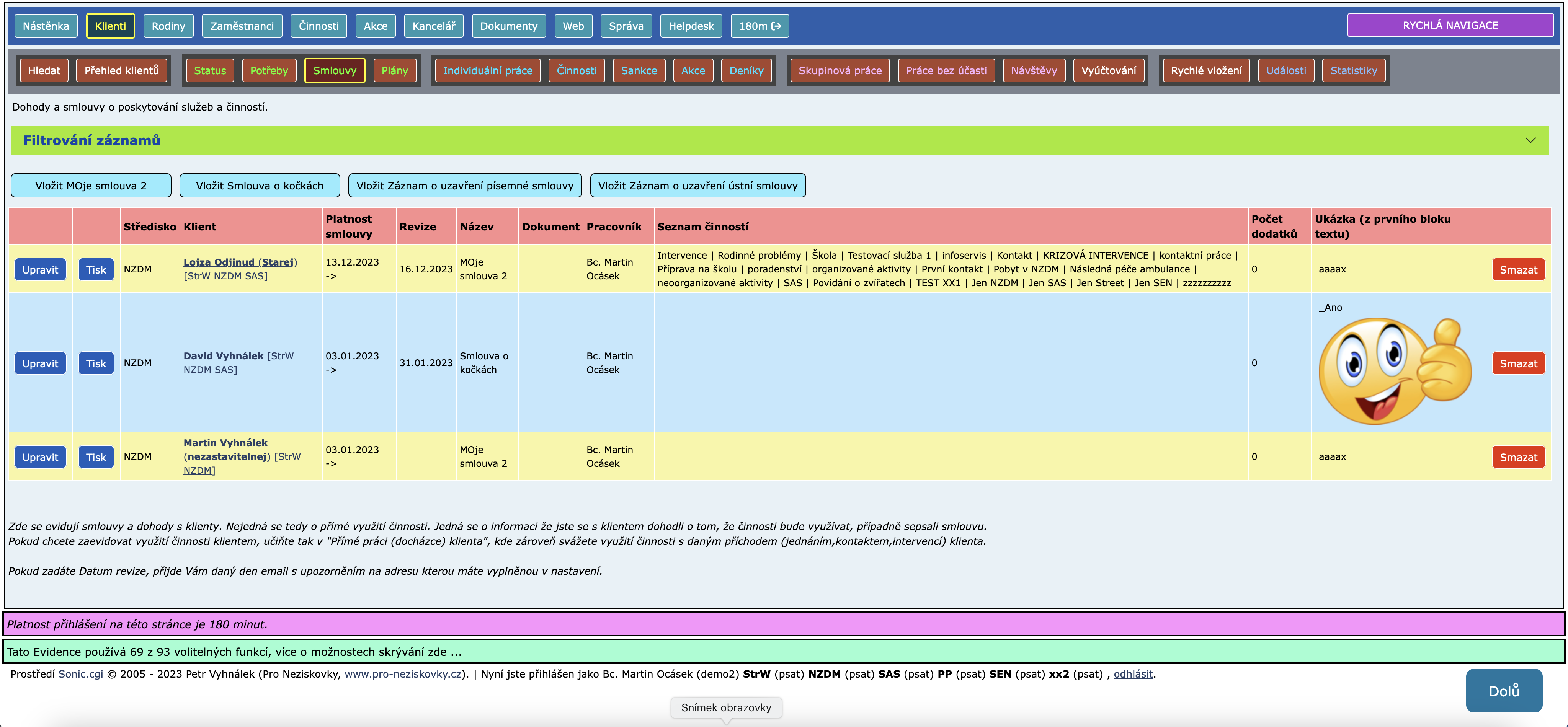 - Evidence smluv, individuálních plánů a přímé práce s klienty.