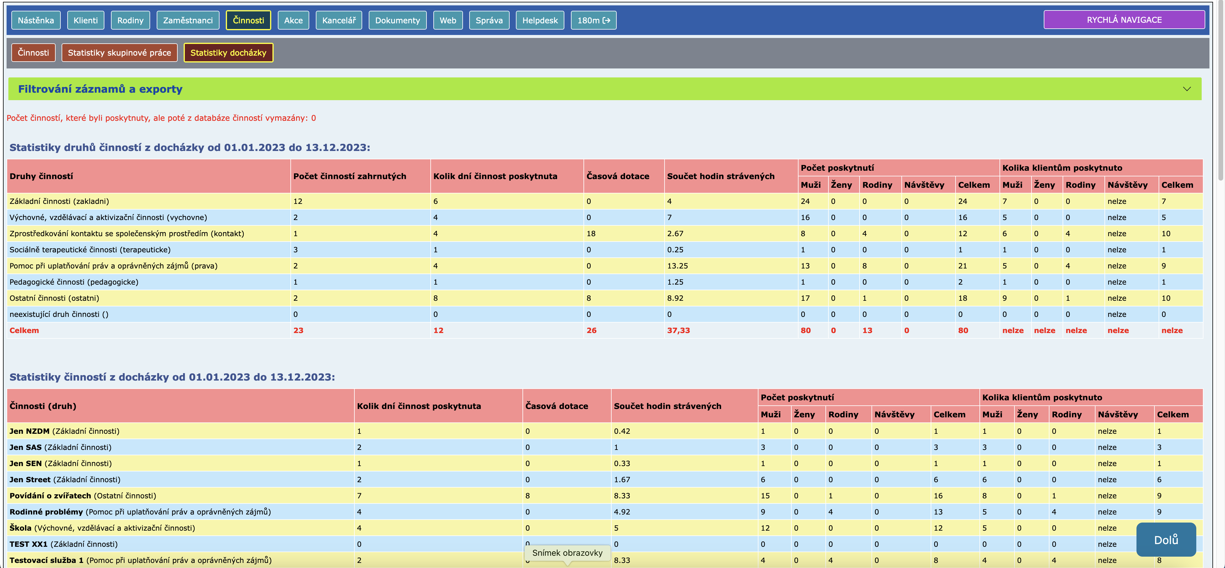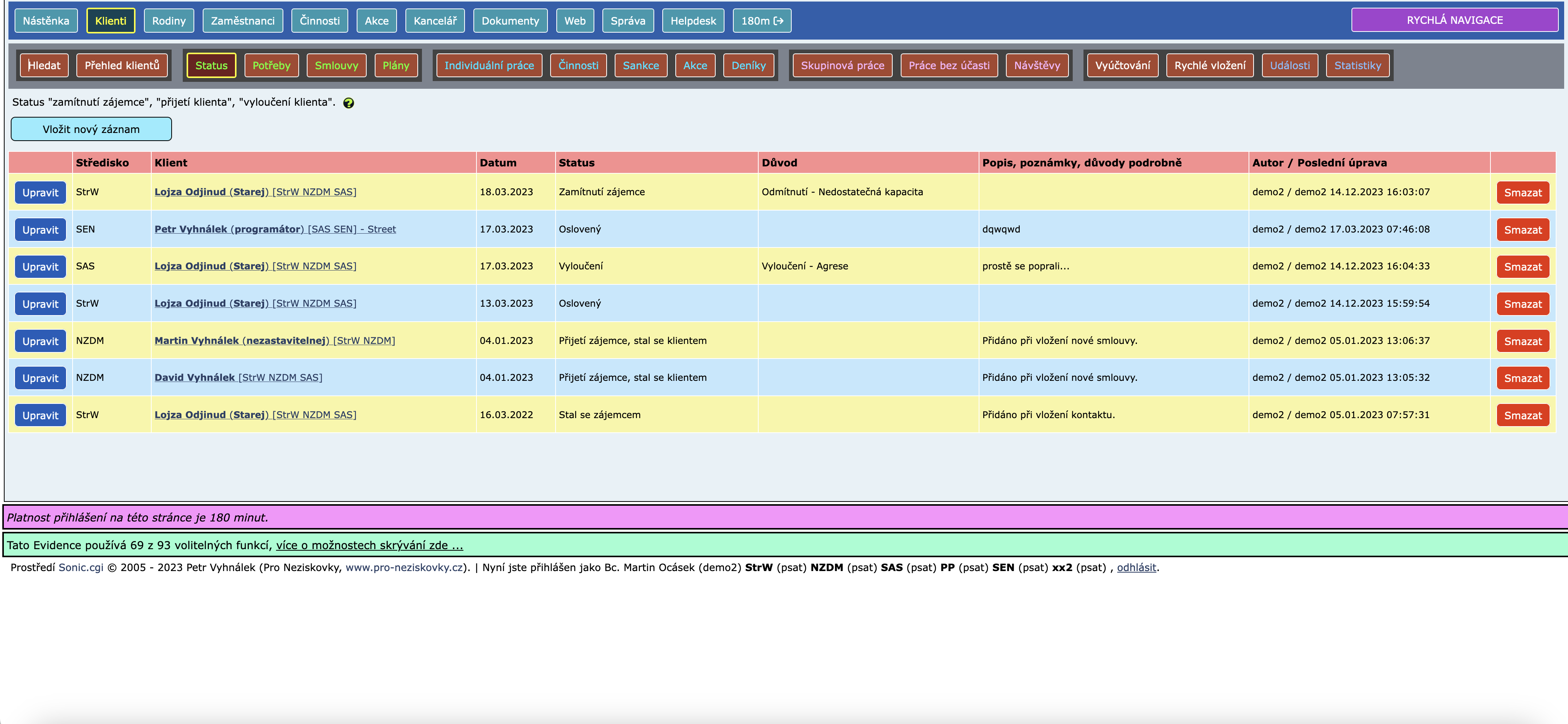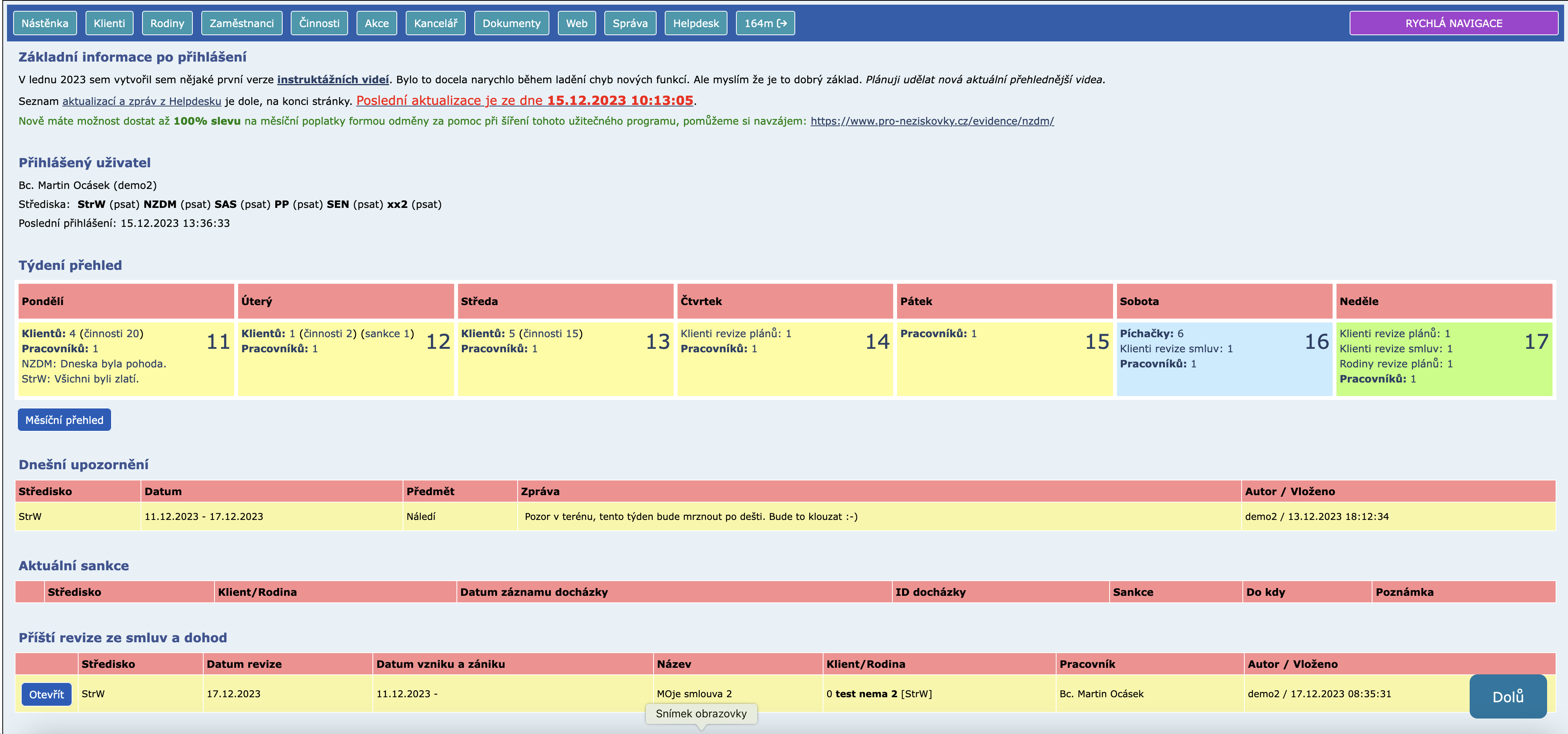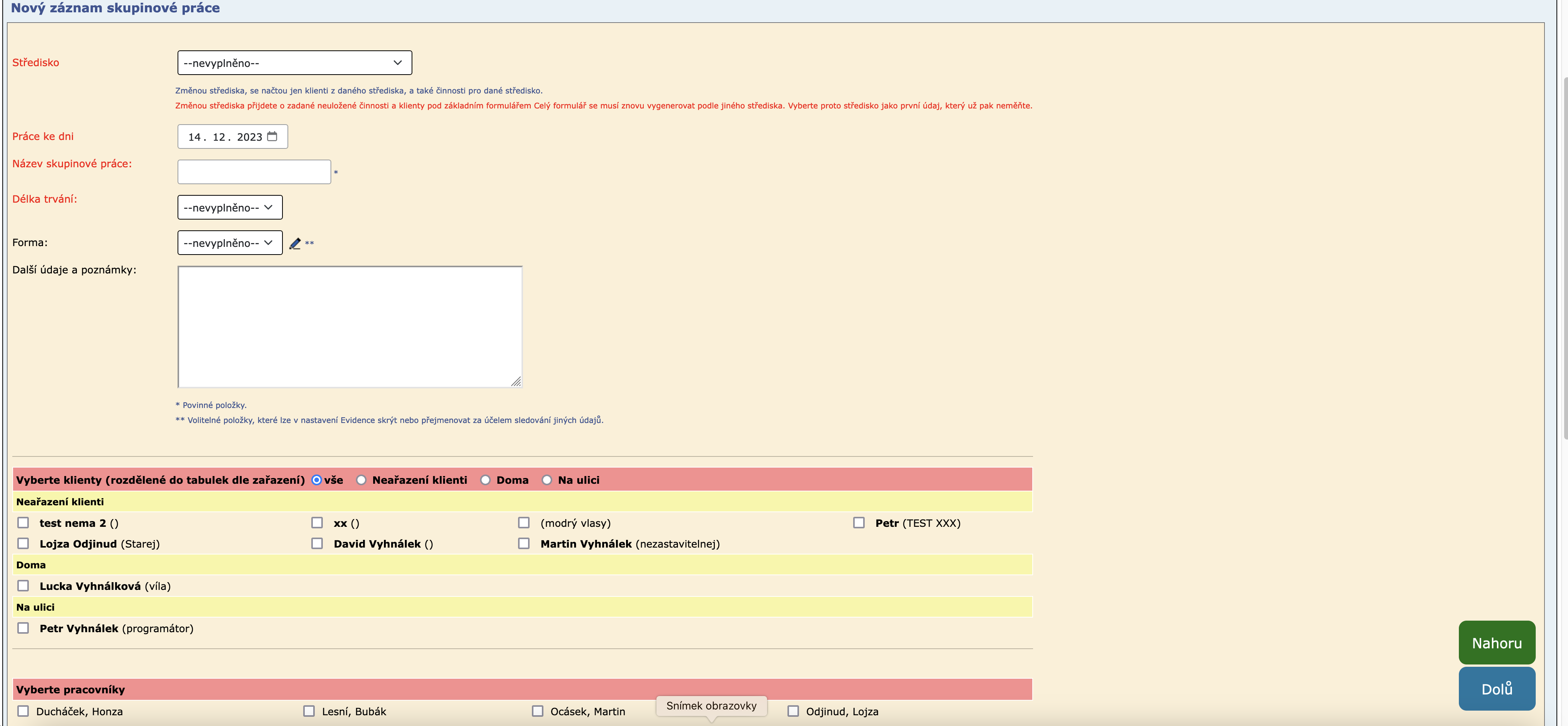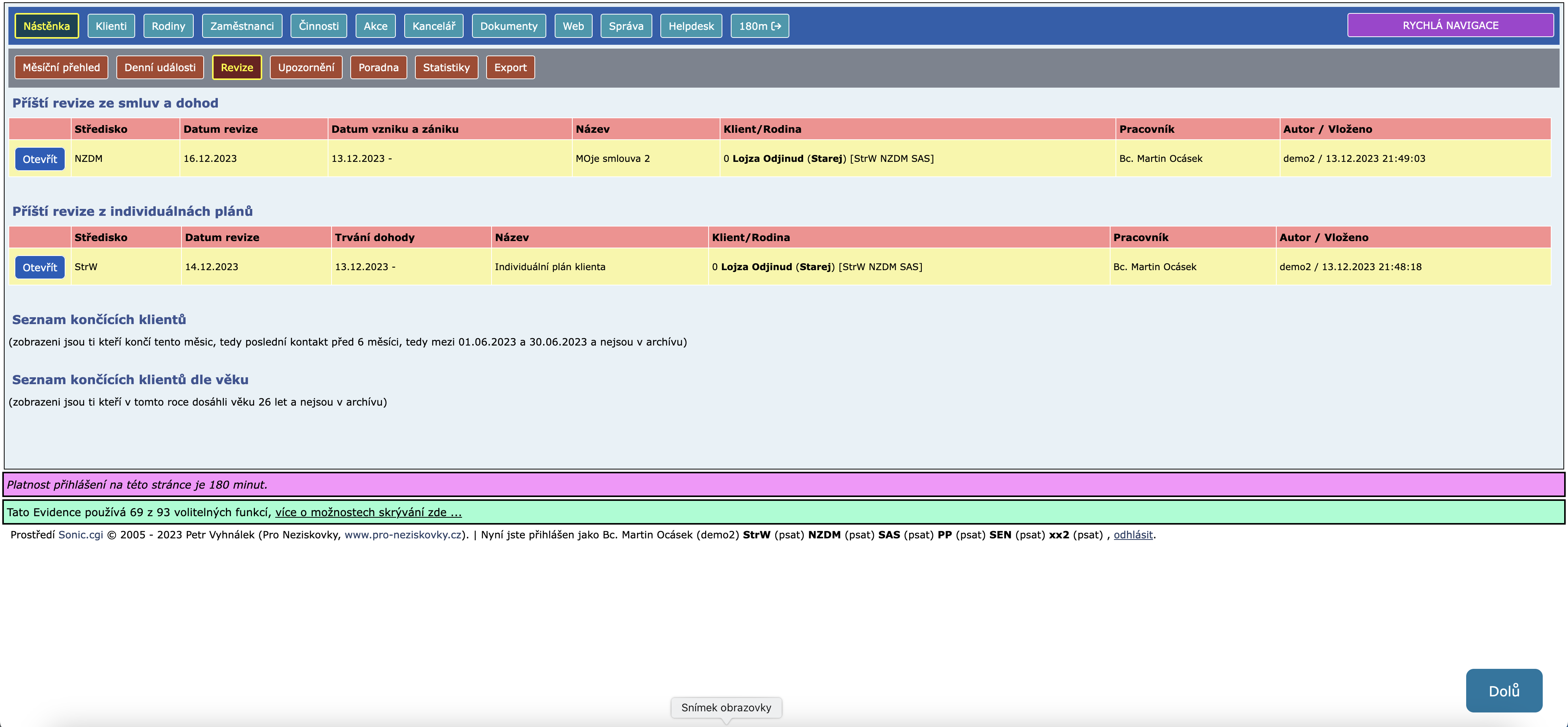 - Evidence smluv, individuálních plánů a přímé práce s klienty.