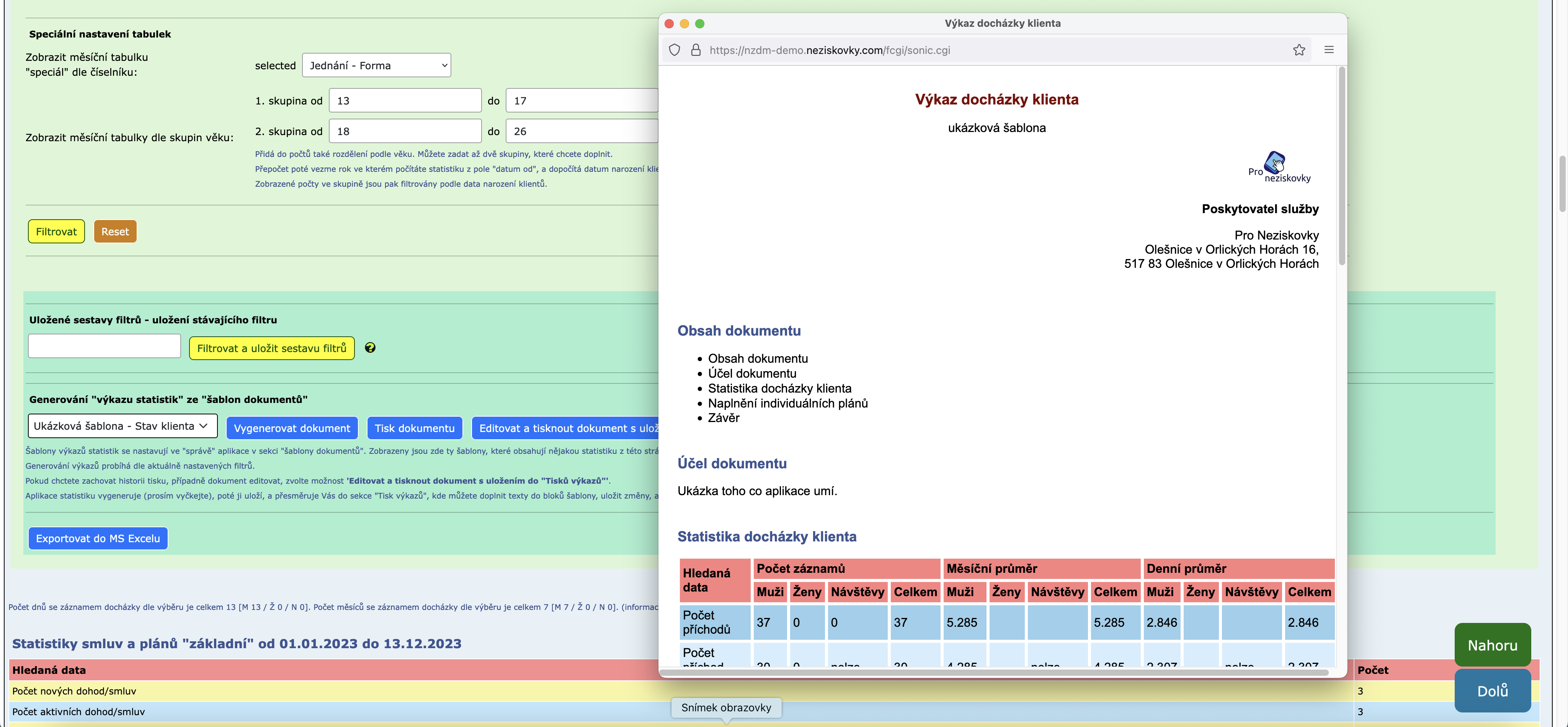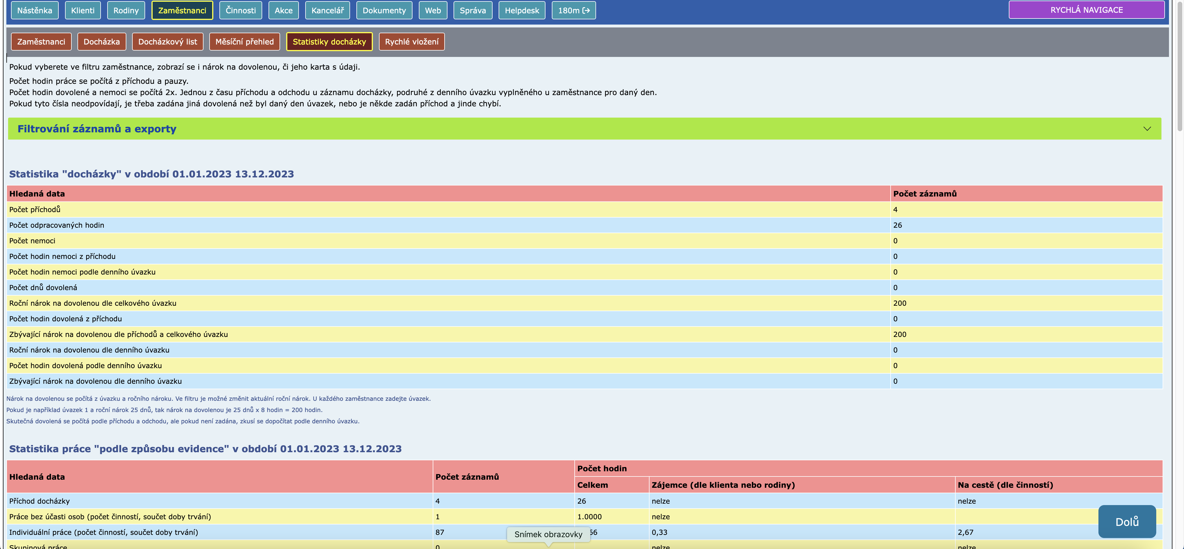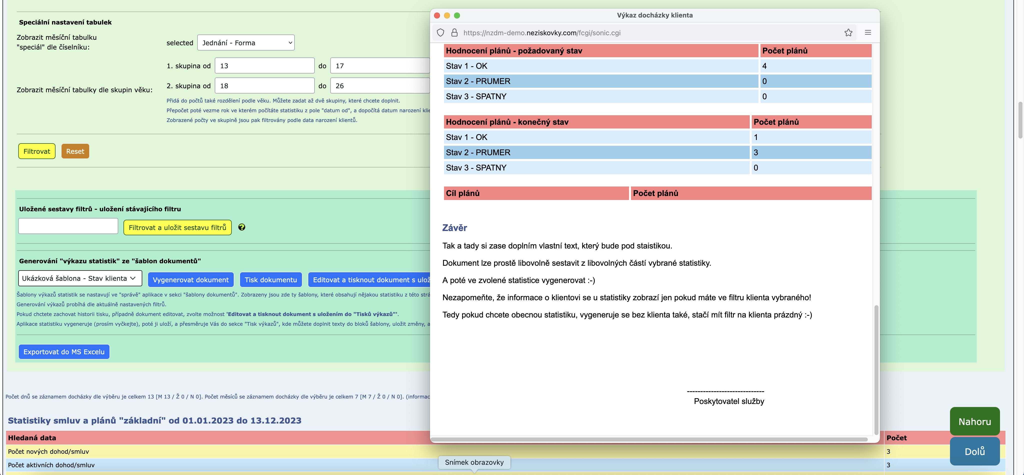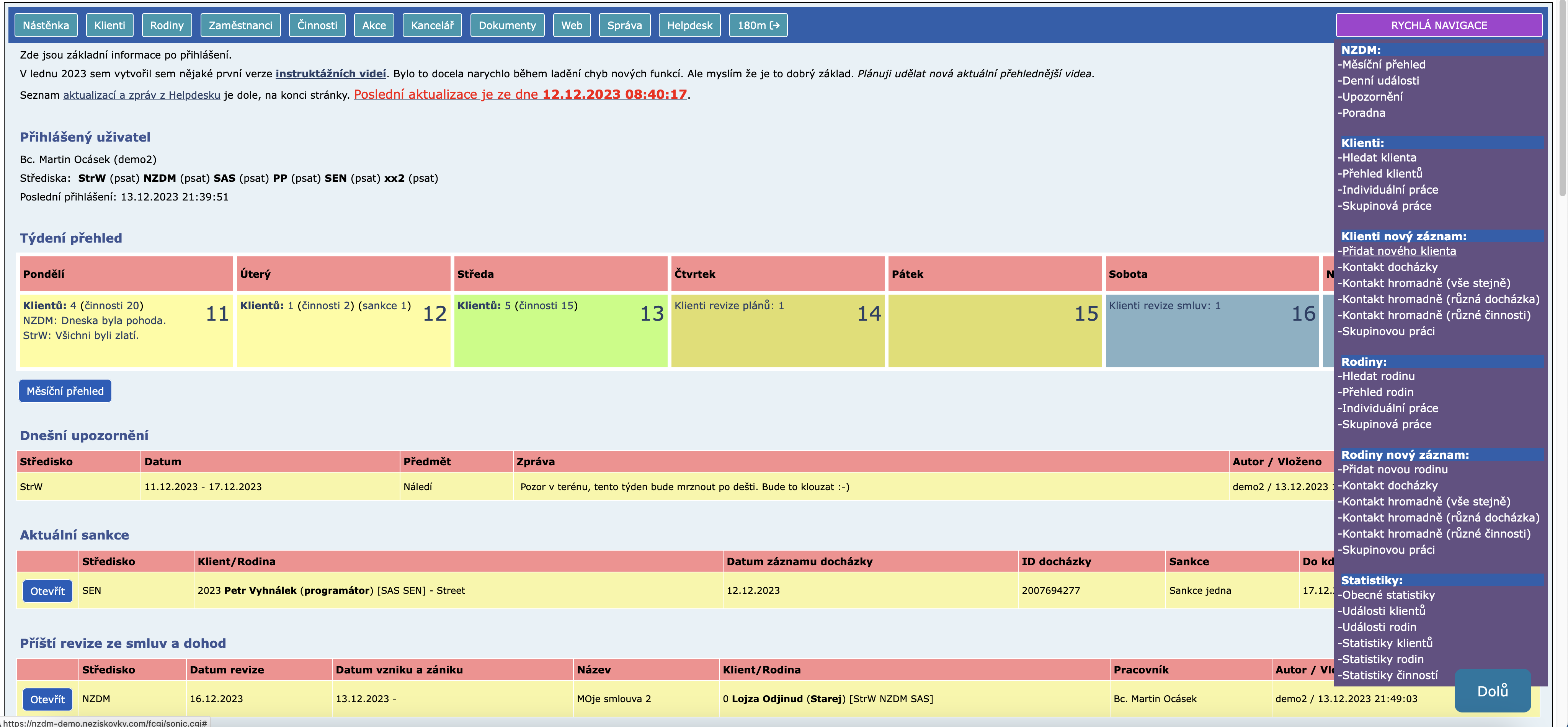 - Evidence smluv, individuálních plánů a přímé práce s klienty.