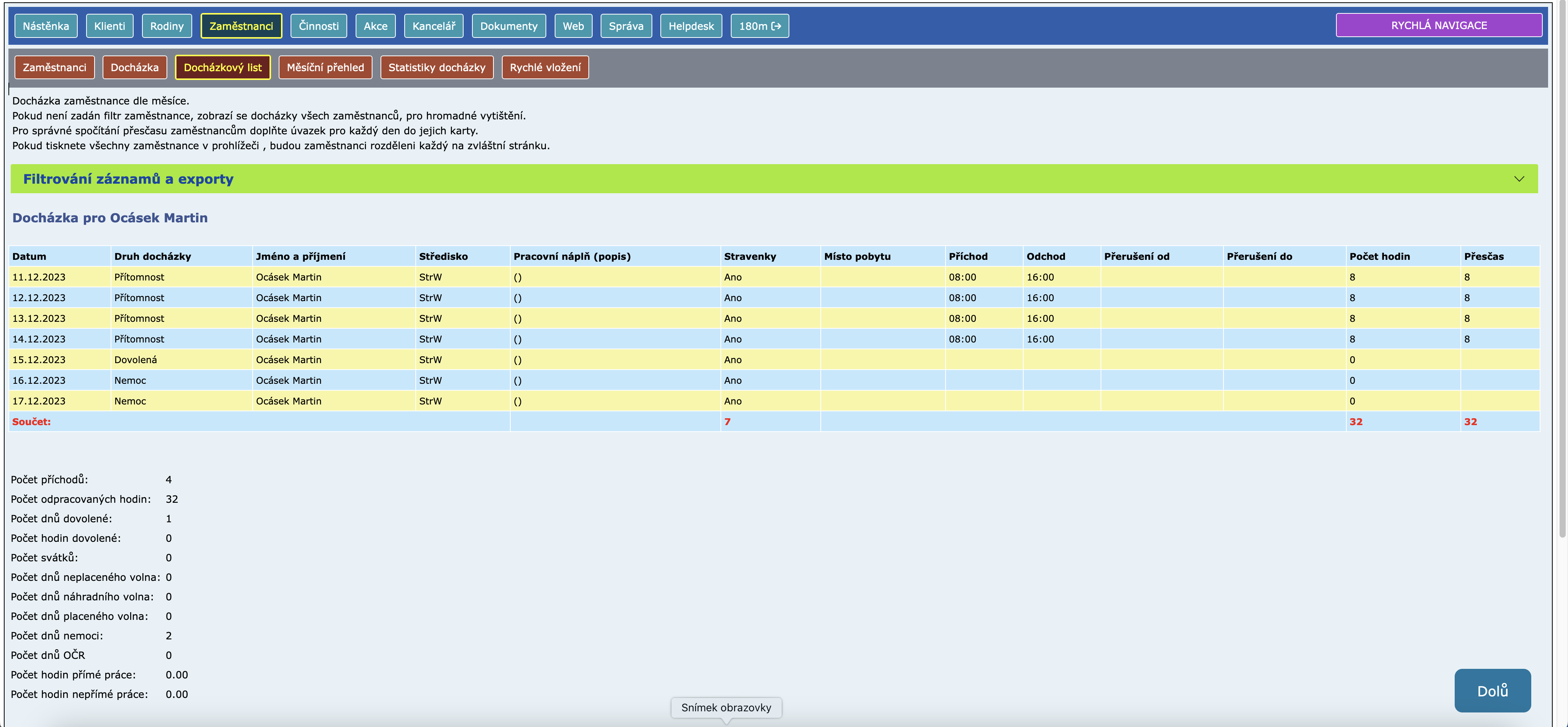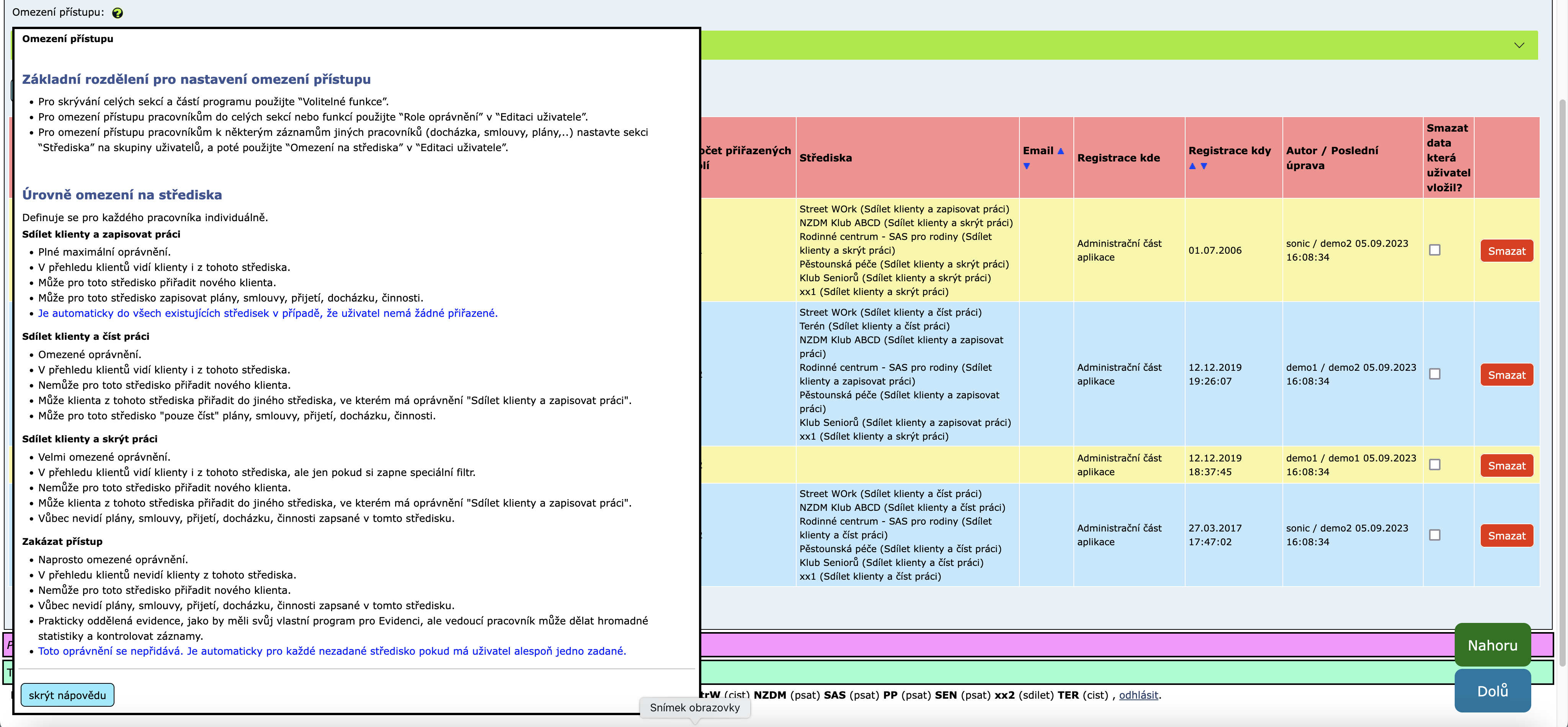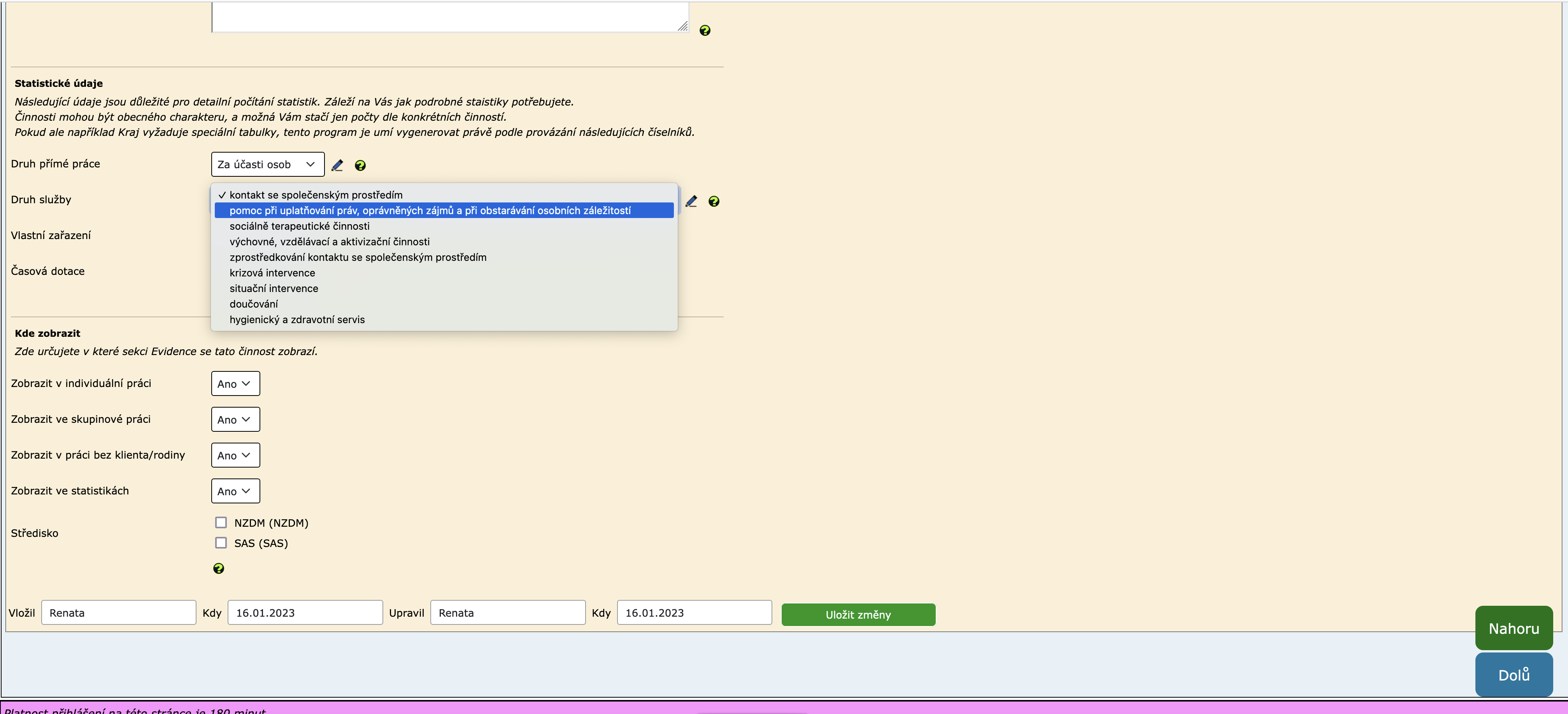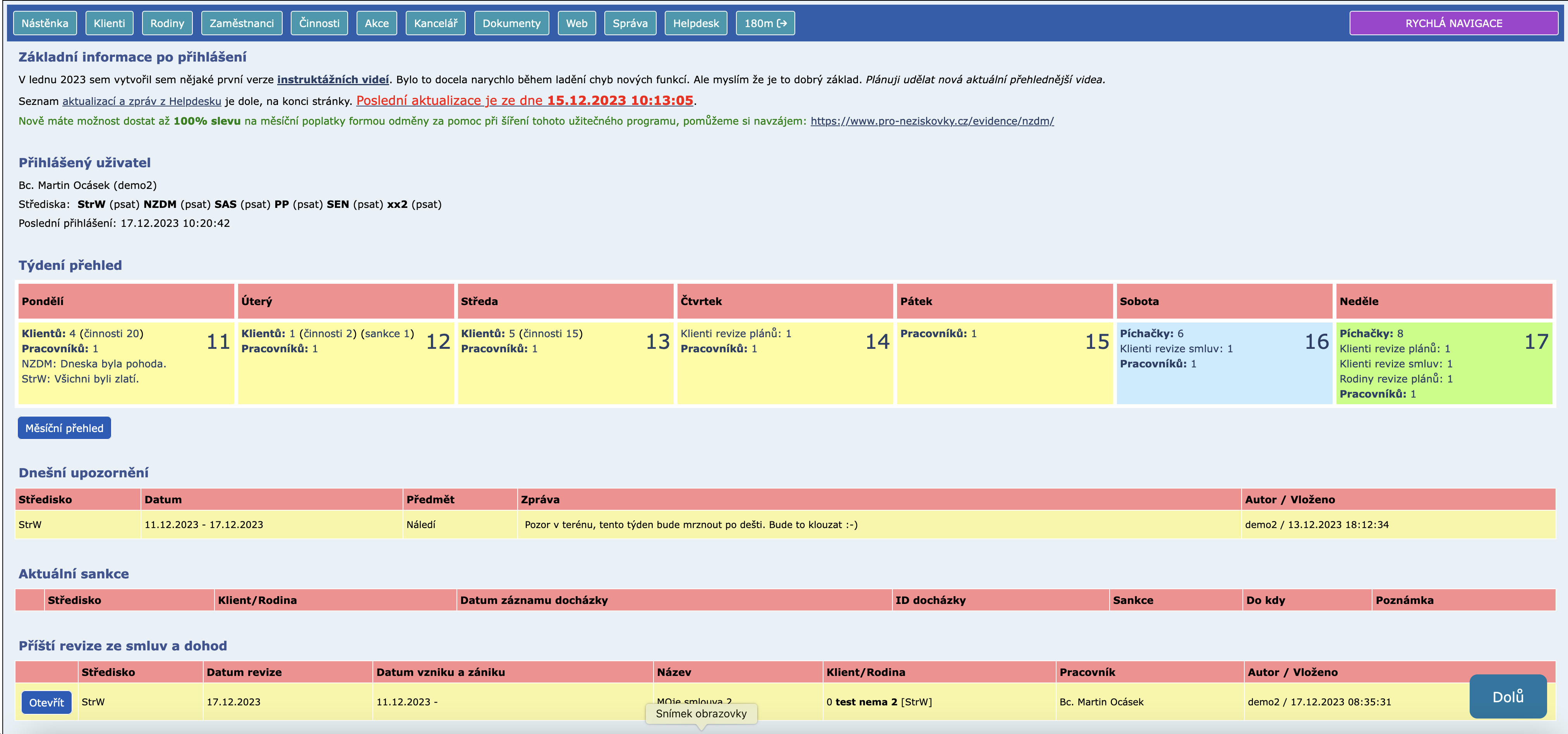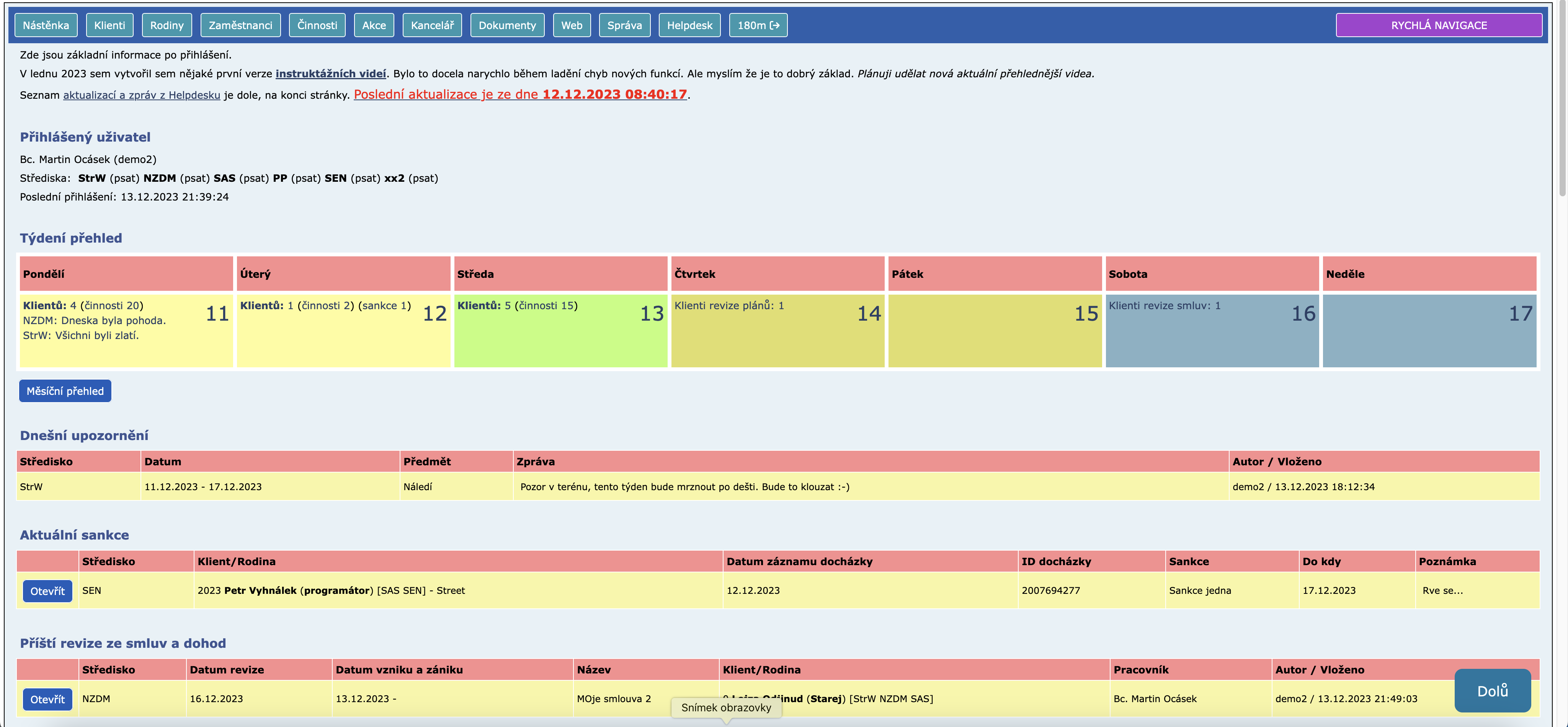 - Evidence smluv, individuálních plánů a přímé práce s klienty.
