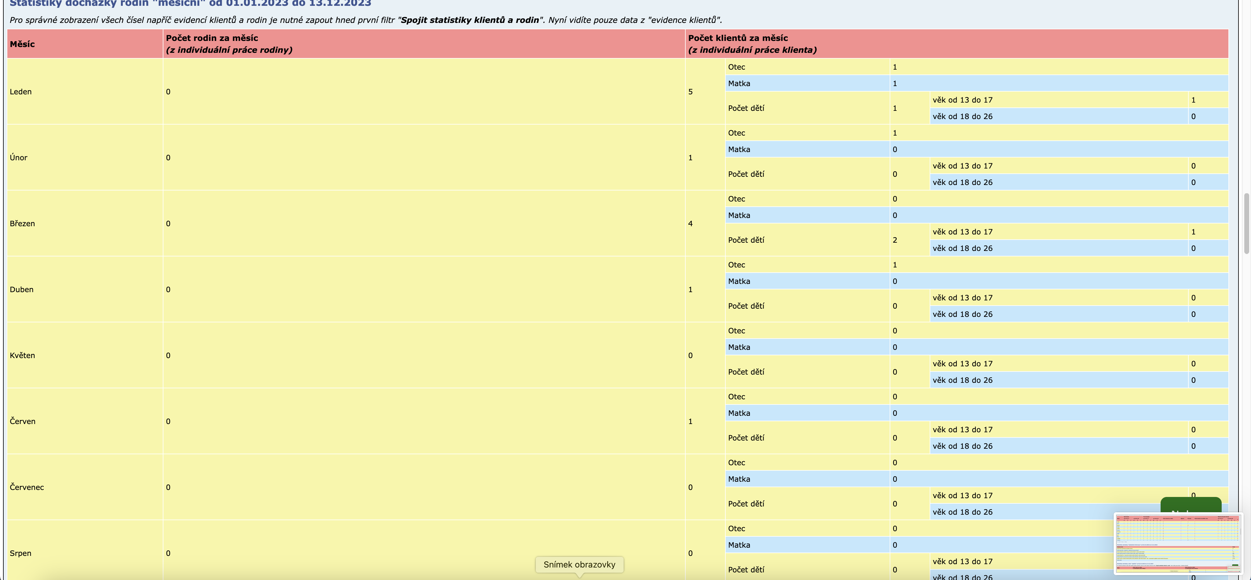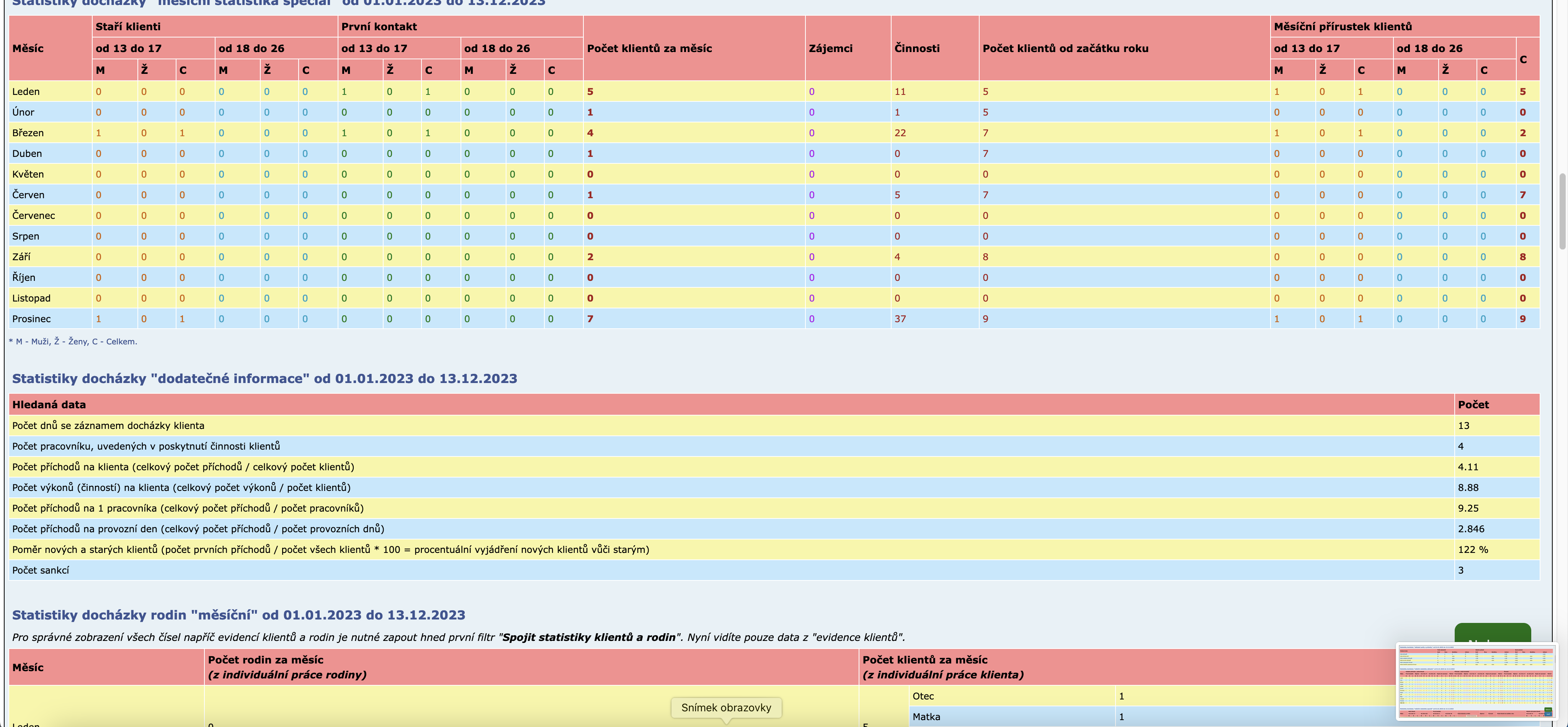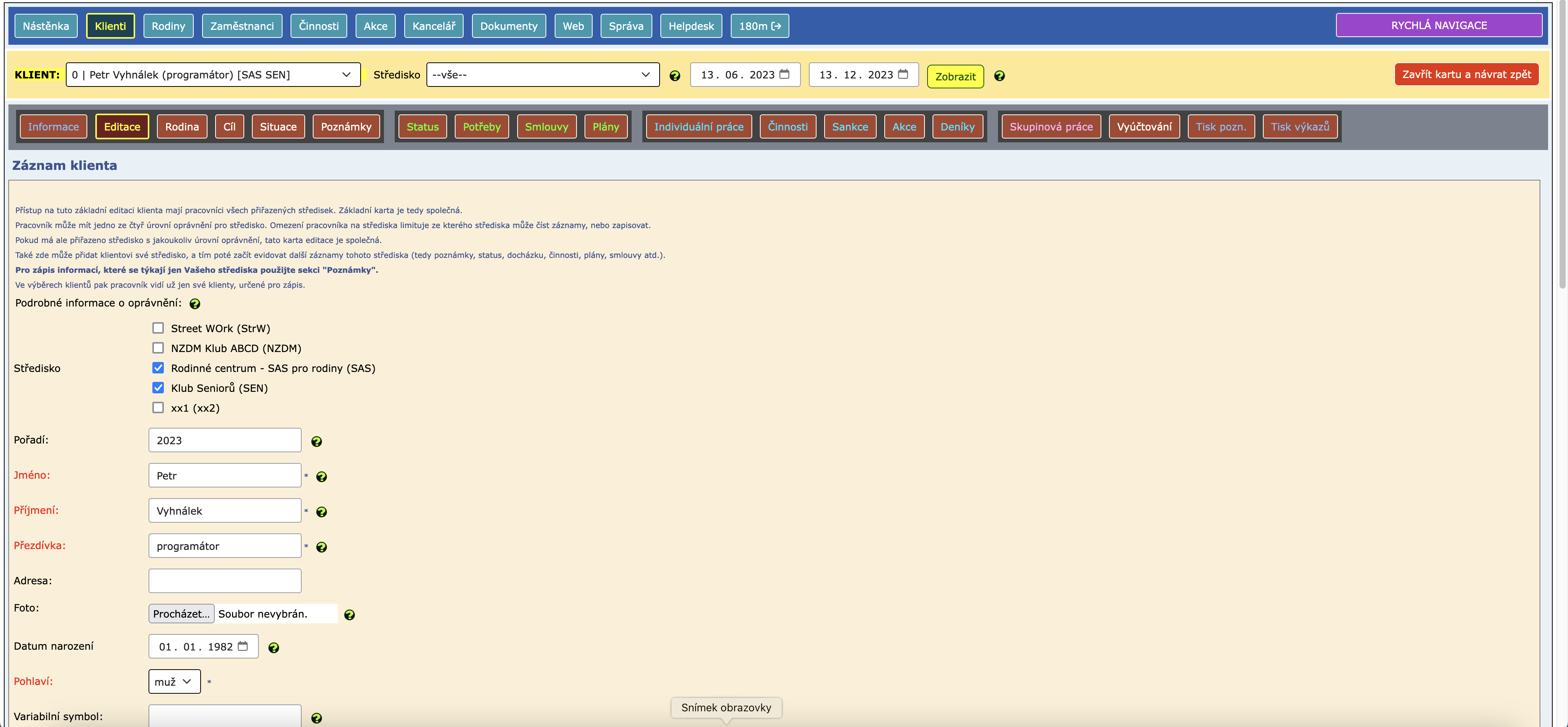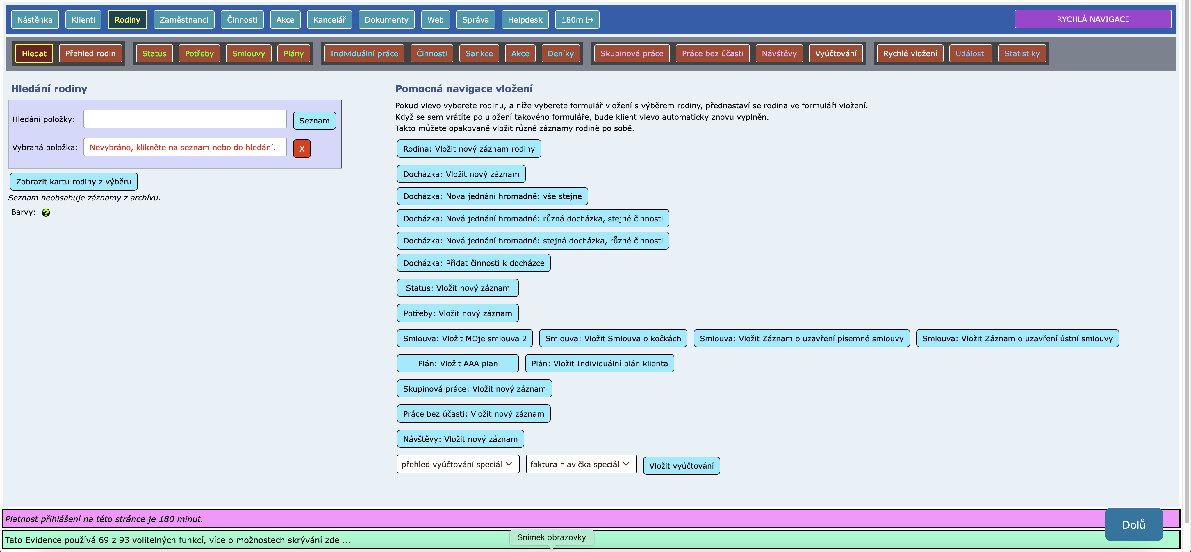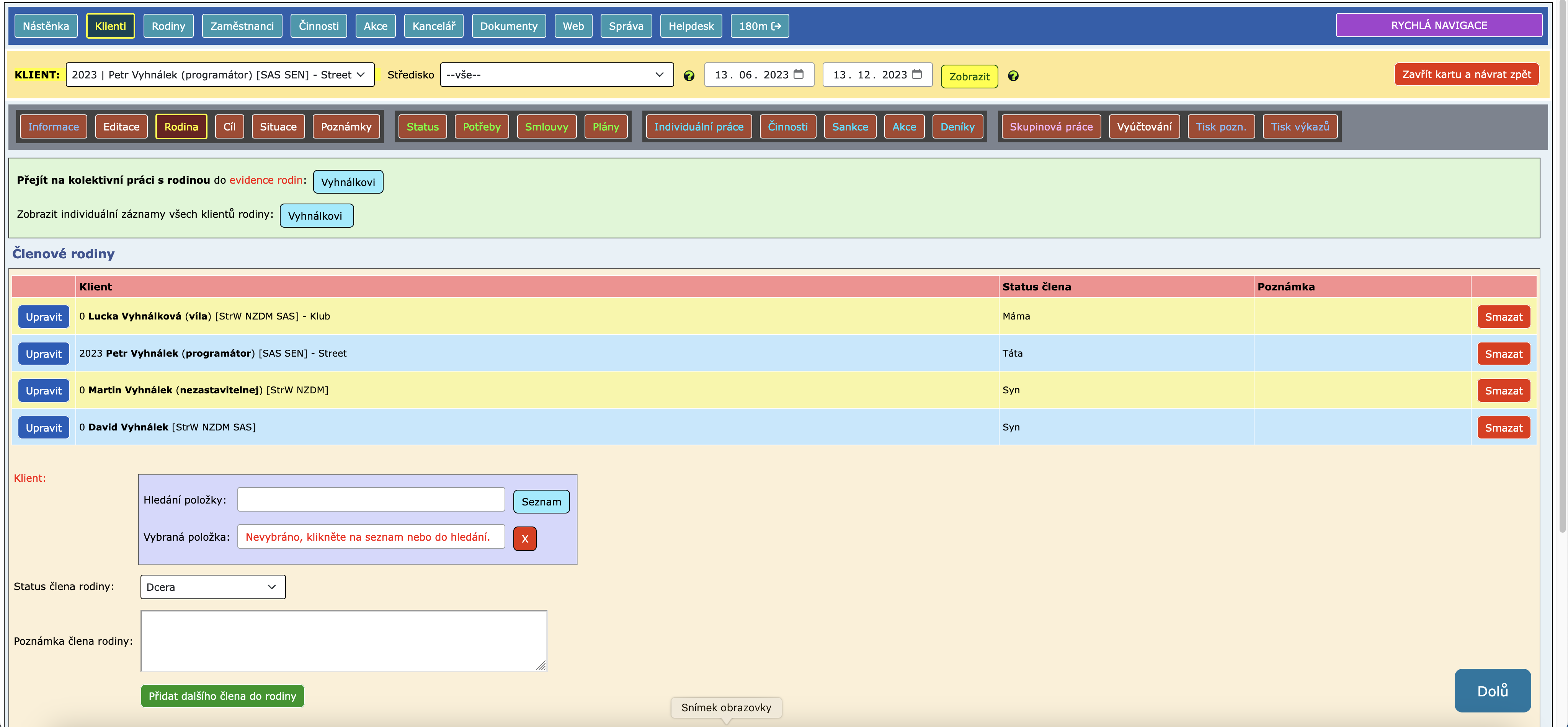 - Evidence klientů a rodin, řazení dle programů, národností, a další.