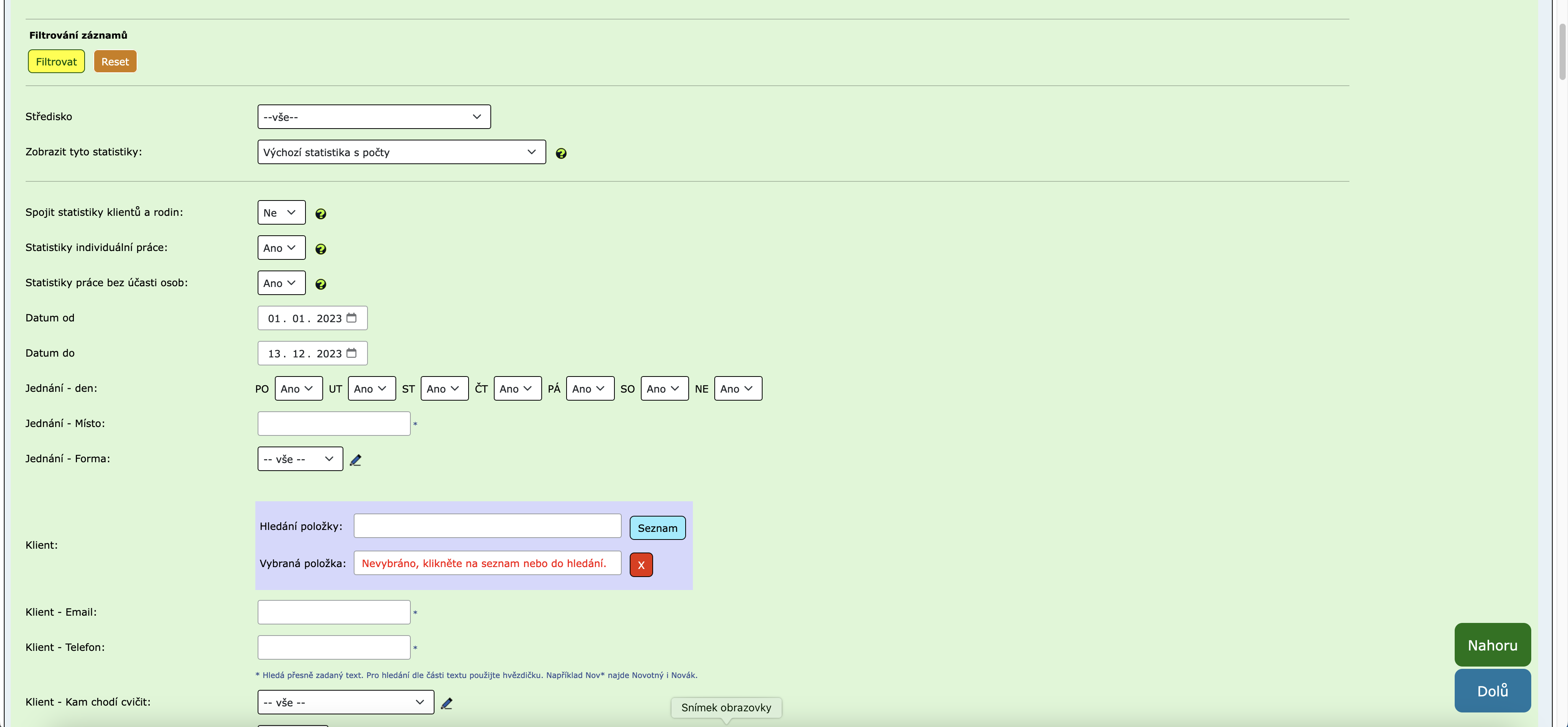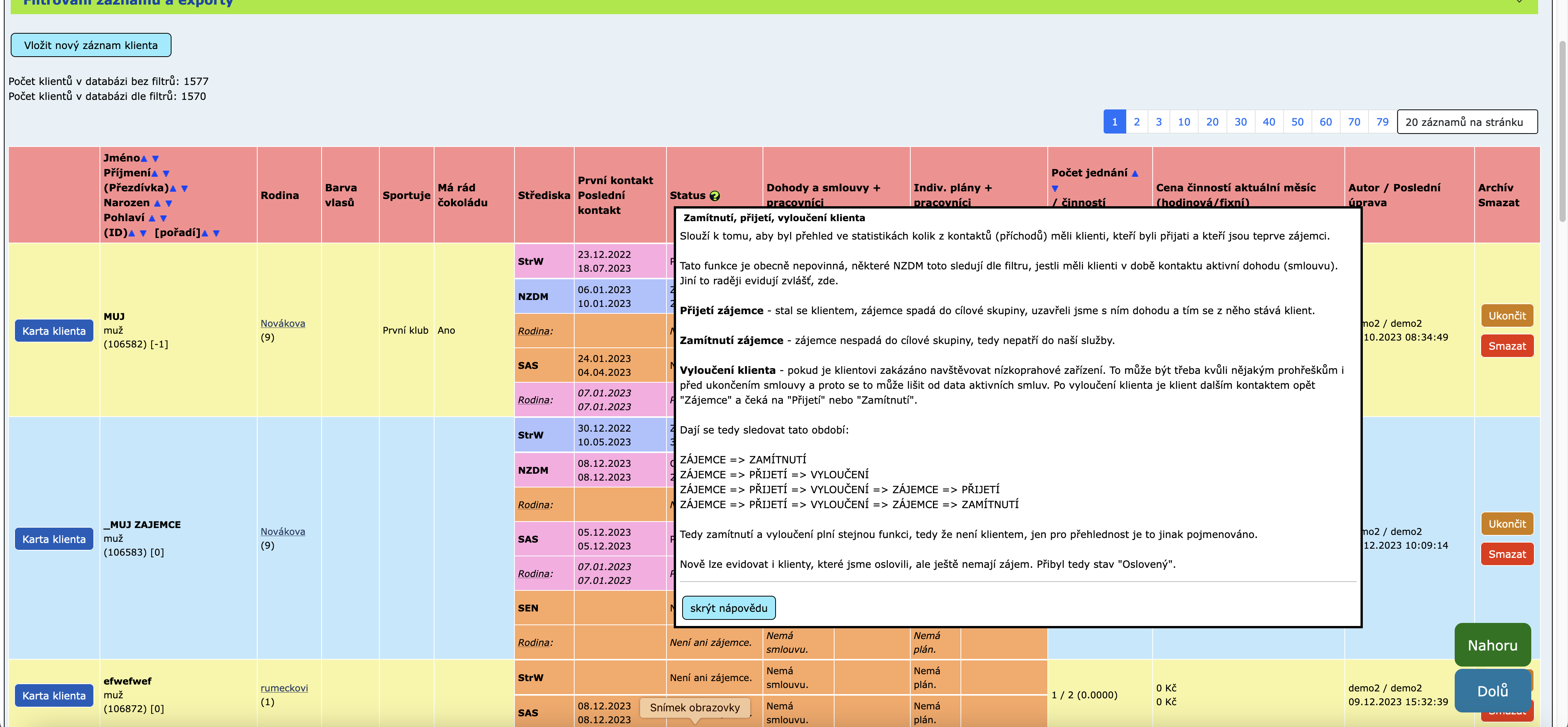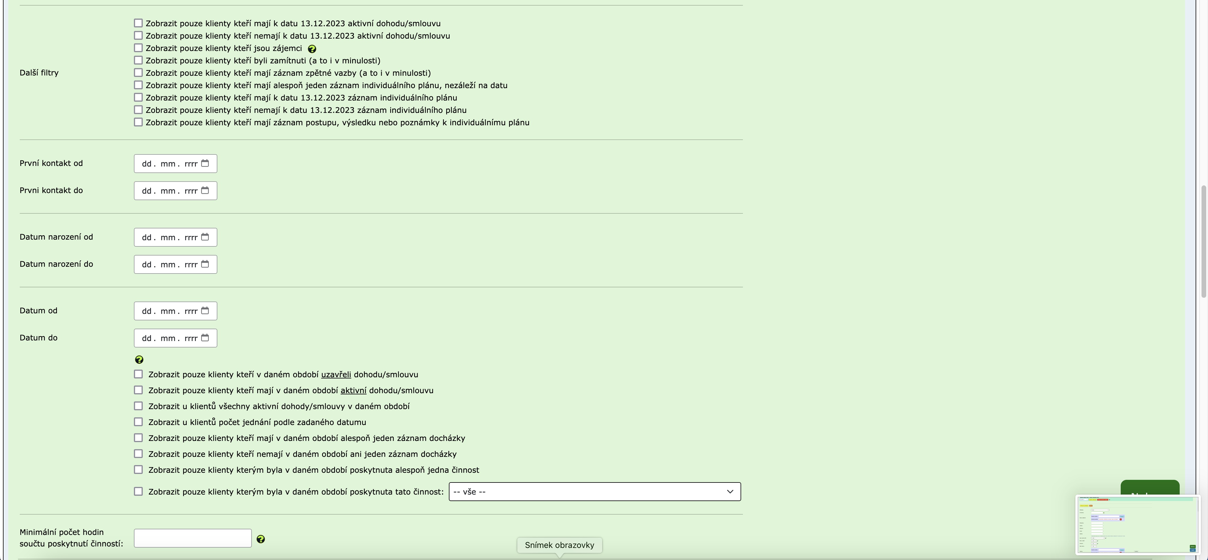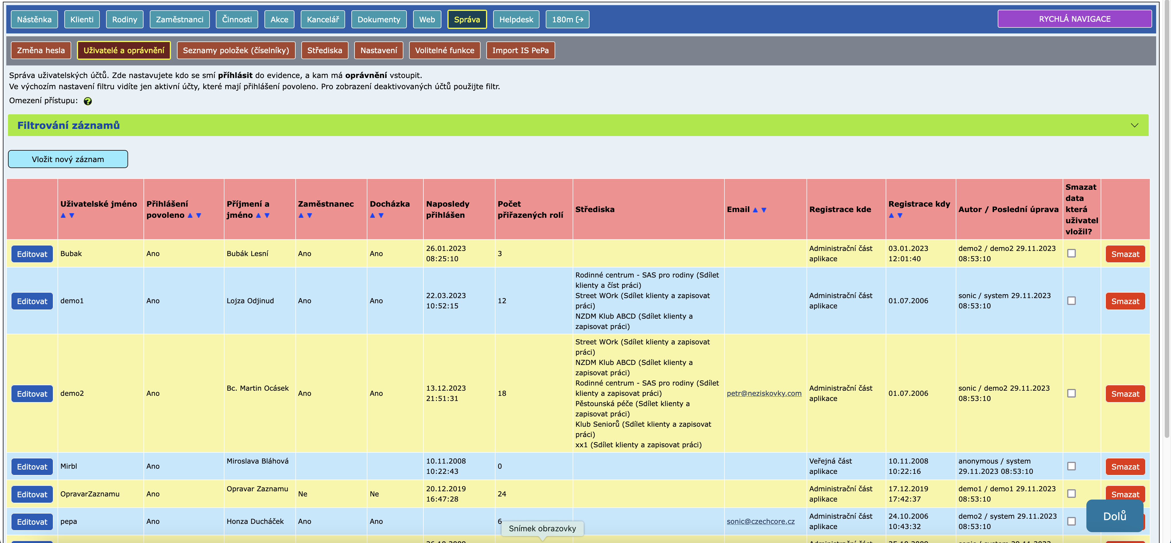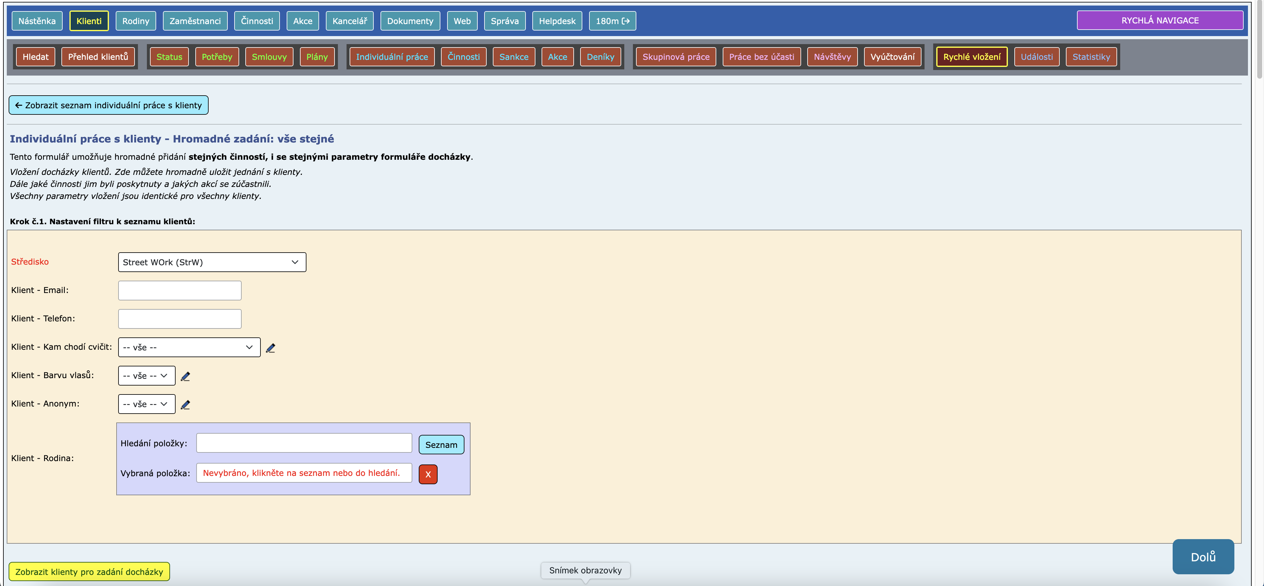 - Evidence klientů a rodin, řazení dle programů, národností, a další.