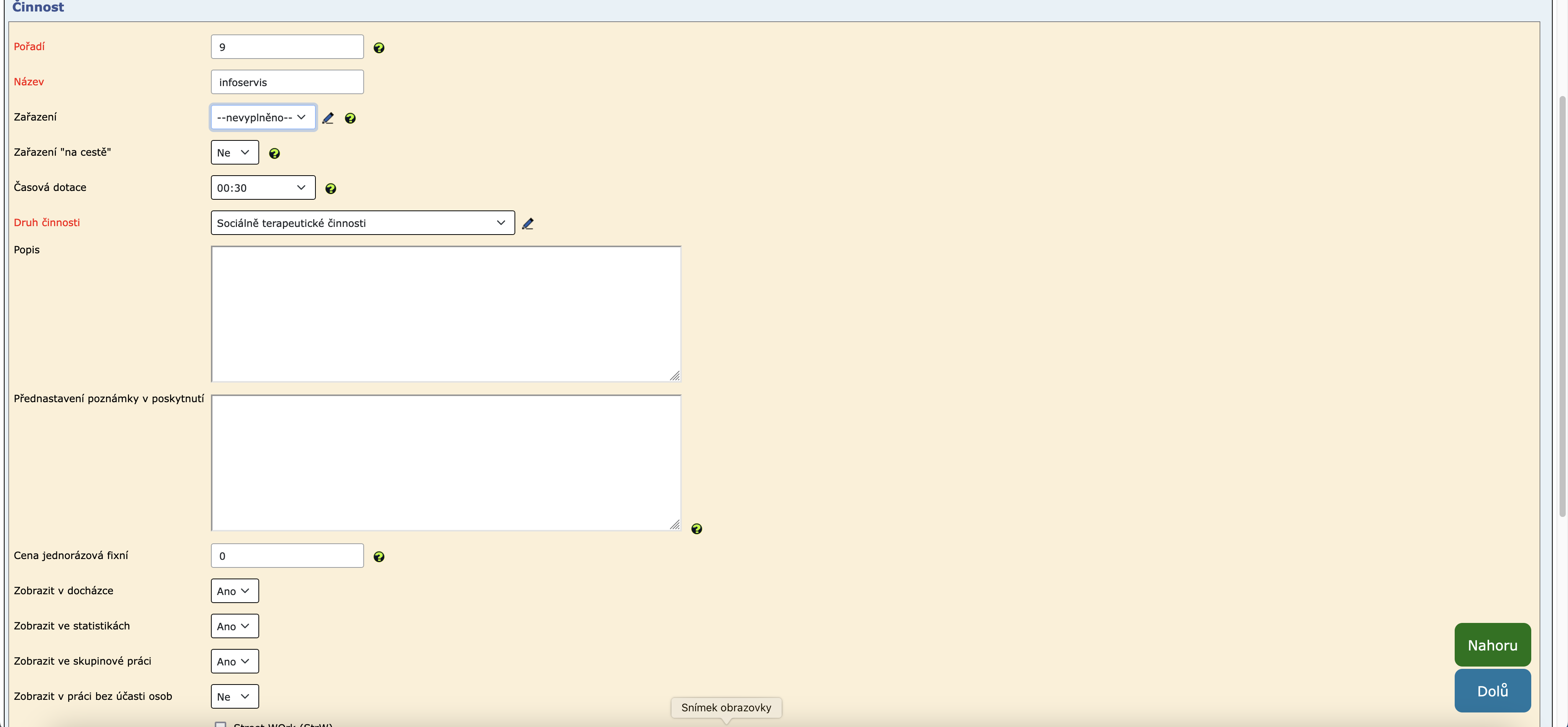 - Jaké služby poskytujete a co potřebujete evidovat.