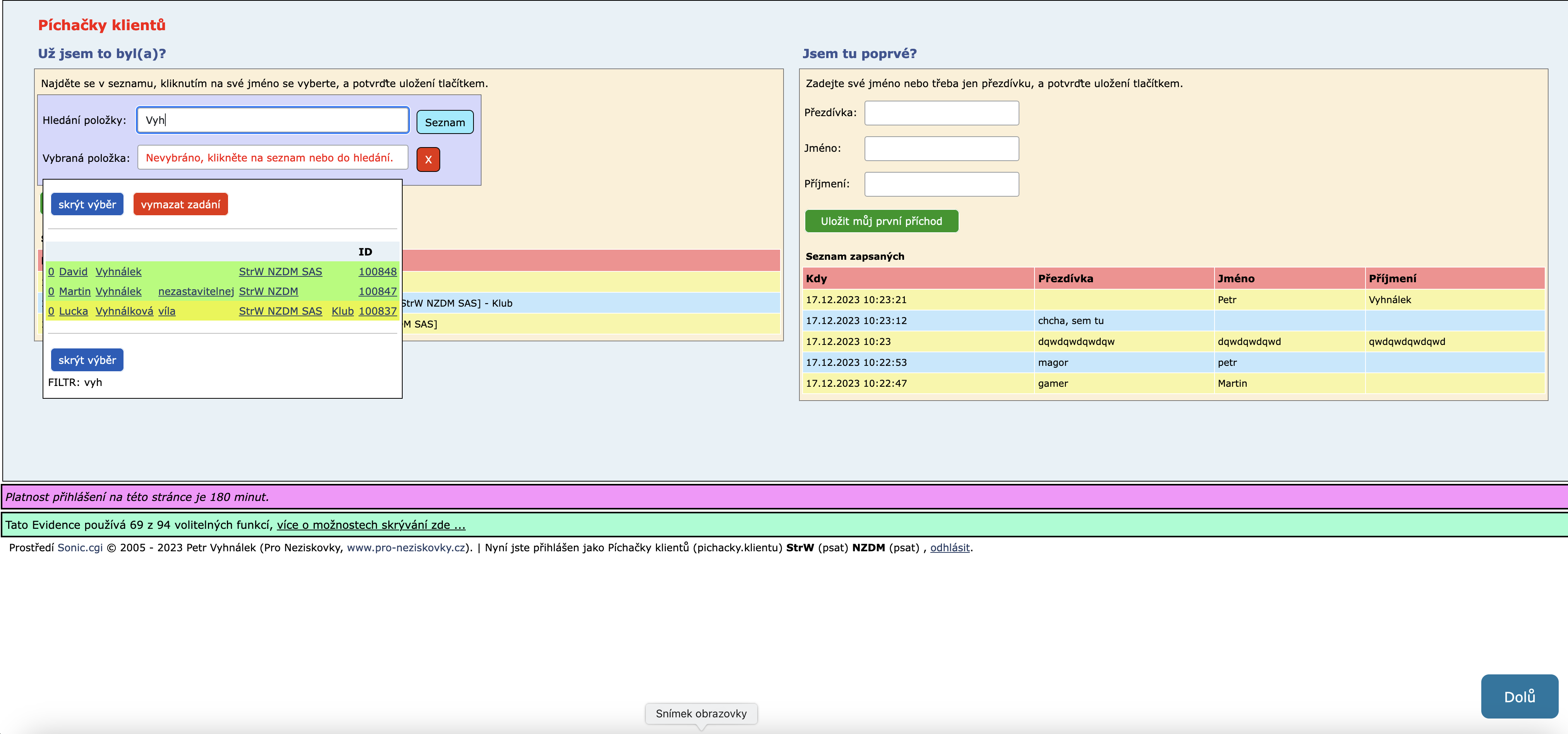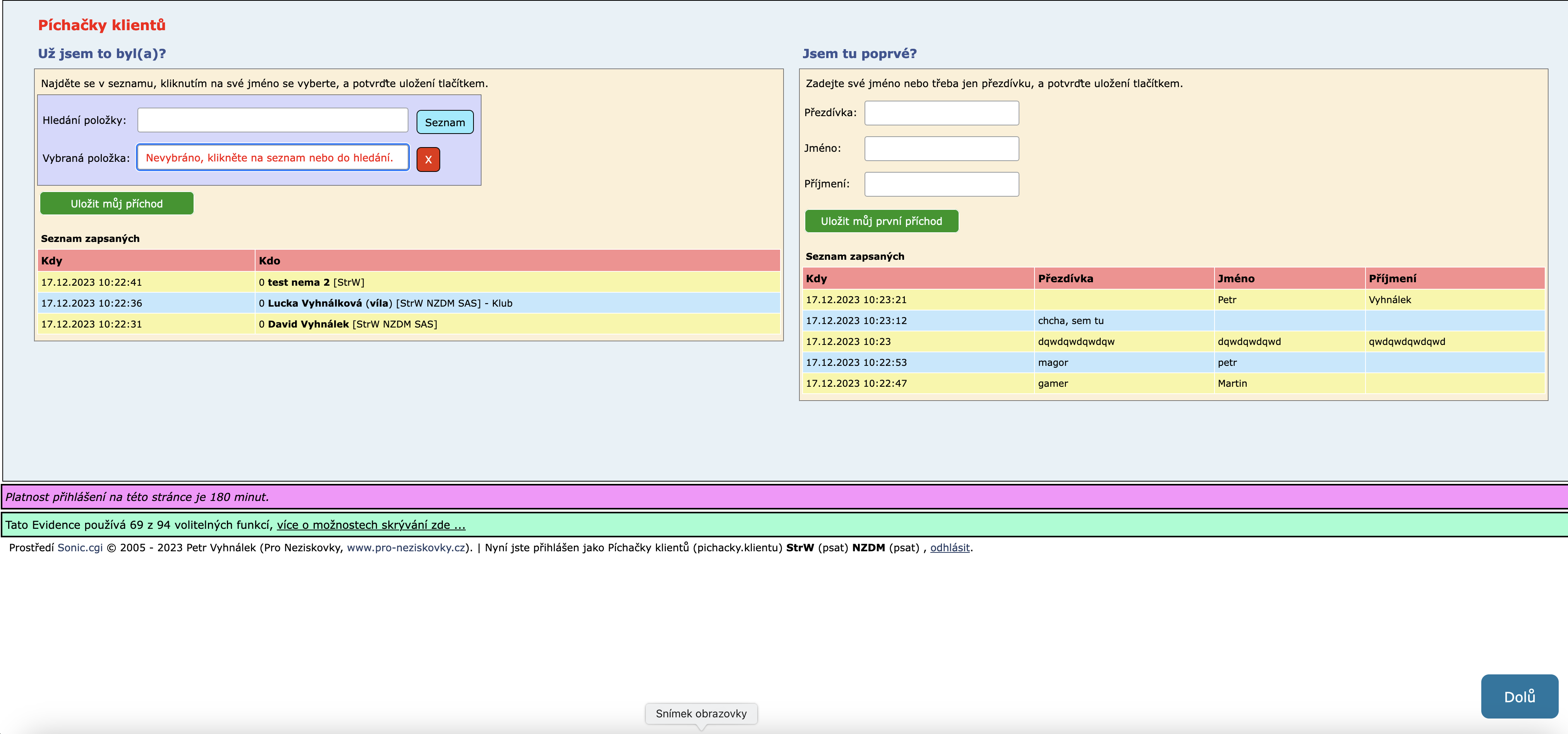 Pro přihlášení použijte jméno "demo2" a heslo "demo2".